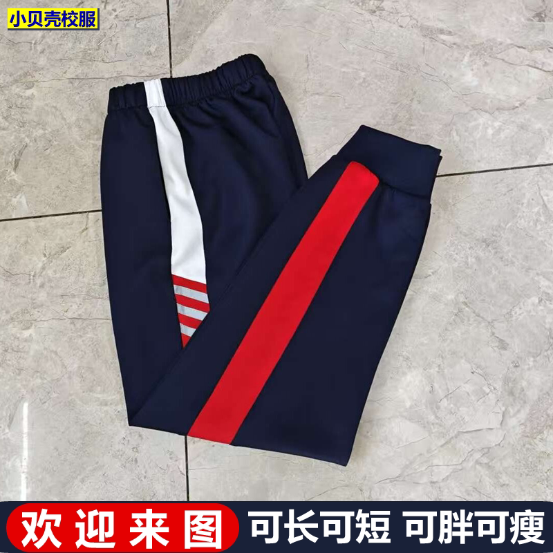伊通镇第二小学校服裤 子定制束口高中小学生深蓝色纯棉春秋夏冬款