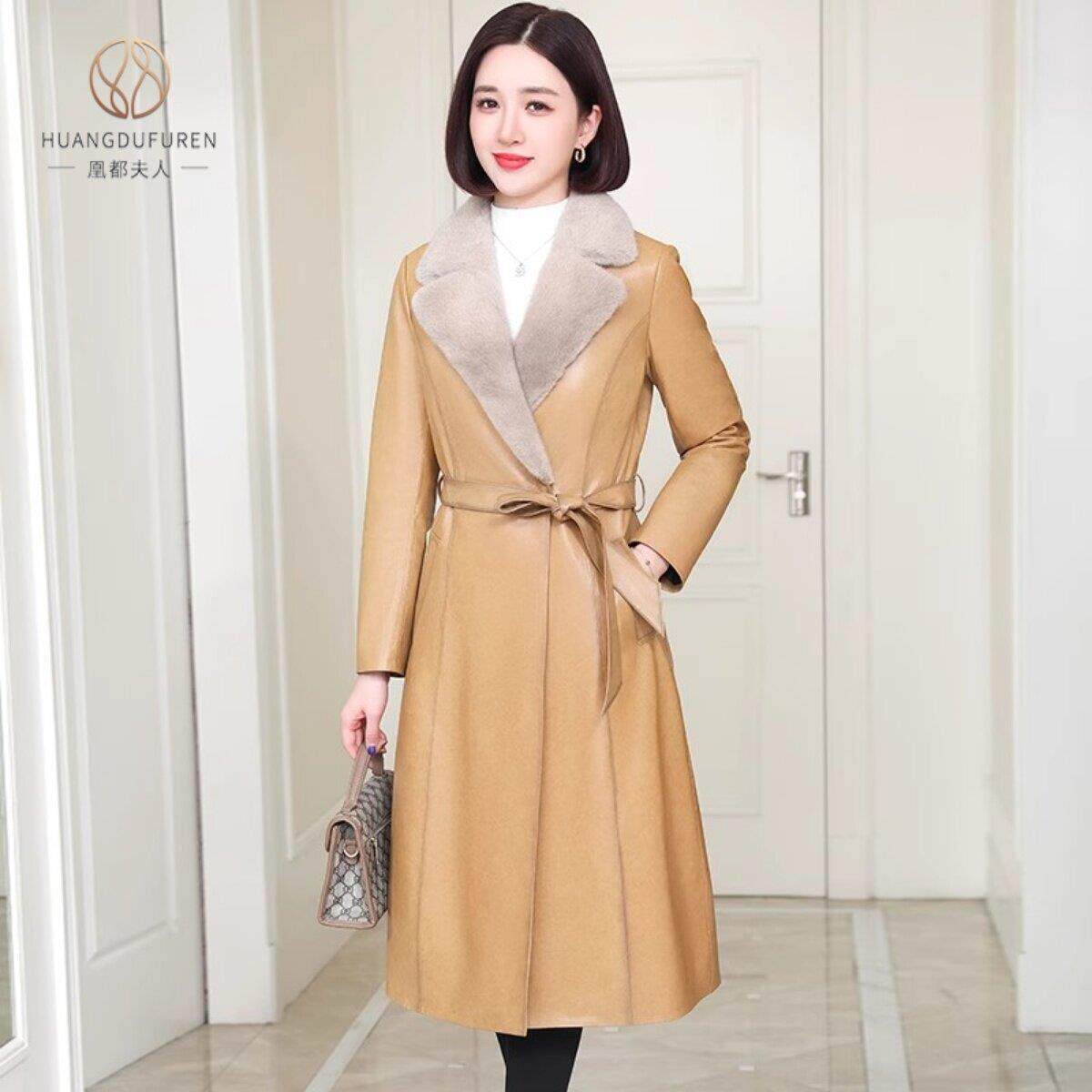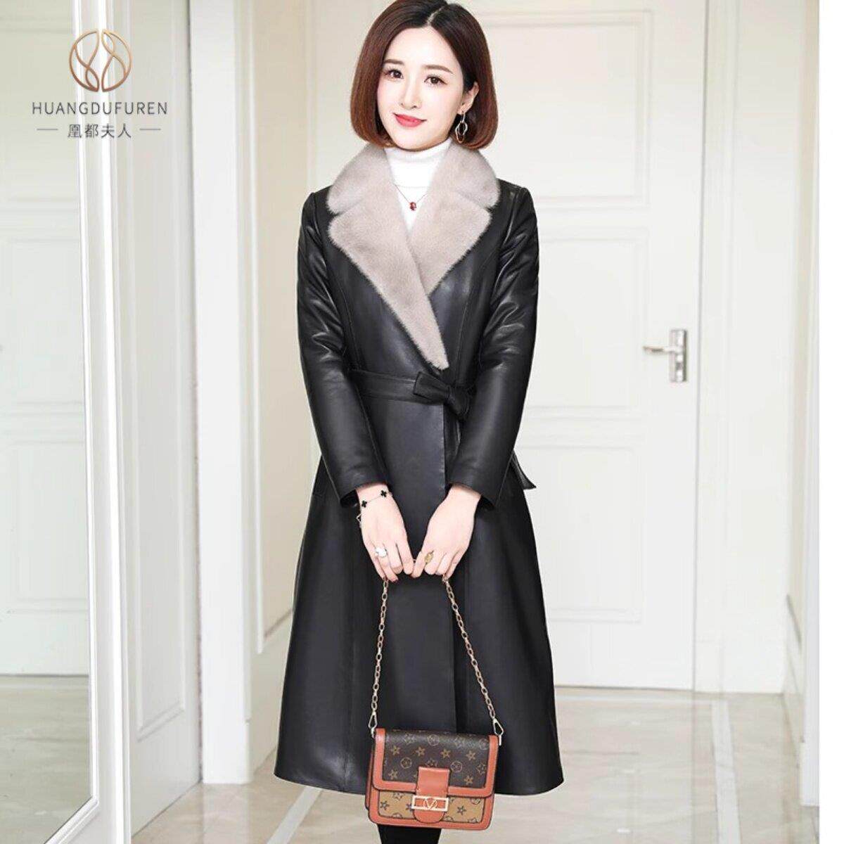 外套 风衣大衣水貂毛皮毛一体修身 凰都夫人真皮皮衣中长款 皮草冬季