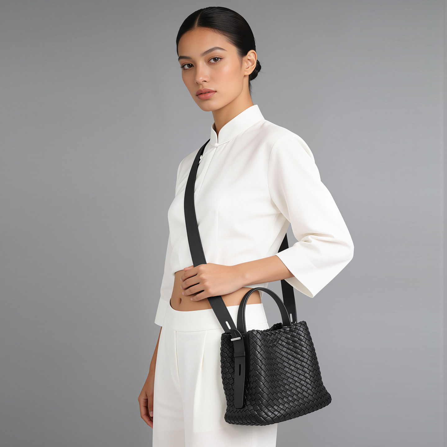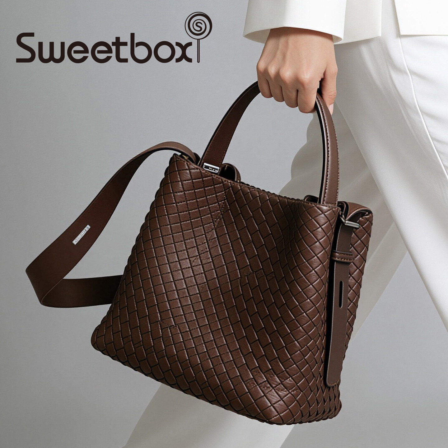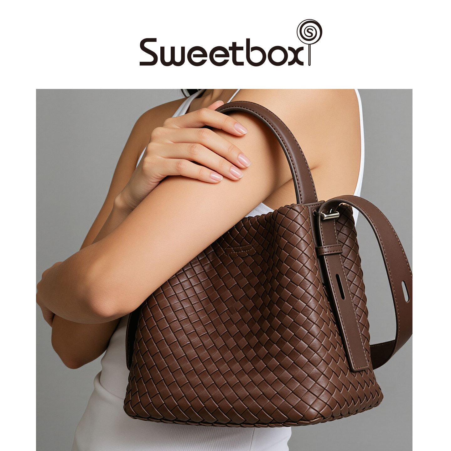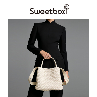Sweetbox小众编织水桶包女士高级感单肩斜挎菜篮子包宽肩带手提包
