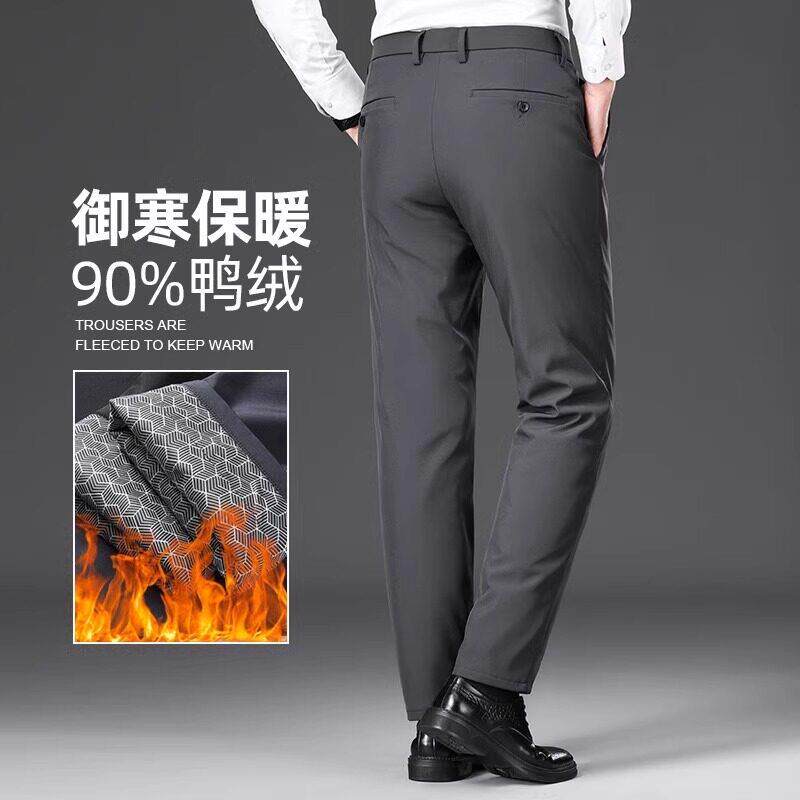 冬季 香港2025秋冬款 中年加厚保暖直筒商务休闲西裤 男士 90%鸭绒裤
