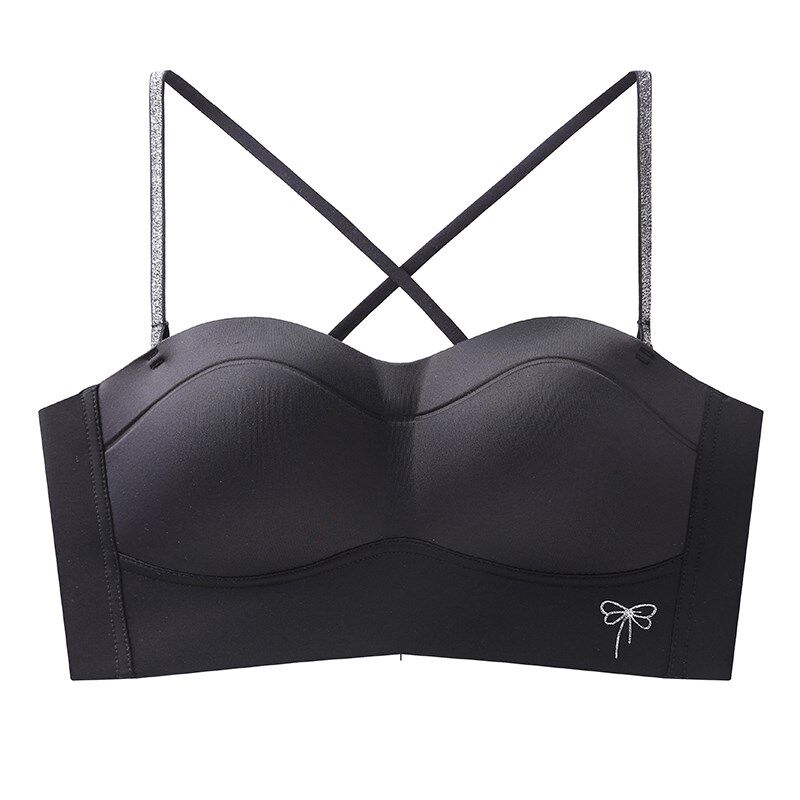 75A85C无痕内衣女小胸聚拢隐形肤色粉底液细肩带交叉W美背薄厚文