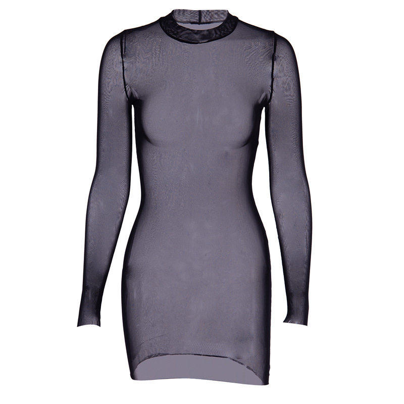 齐臀打底裙女sexy 网纱长袖 dress 2024性感透视连衣裙时尚 欧美女装