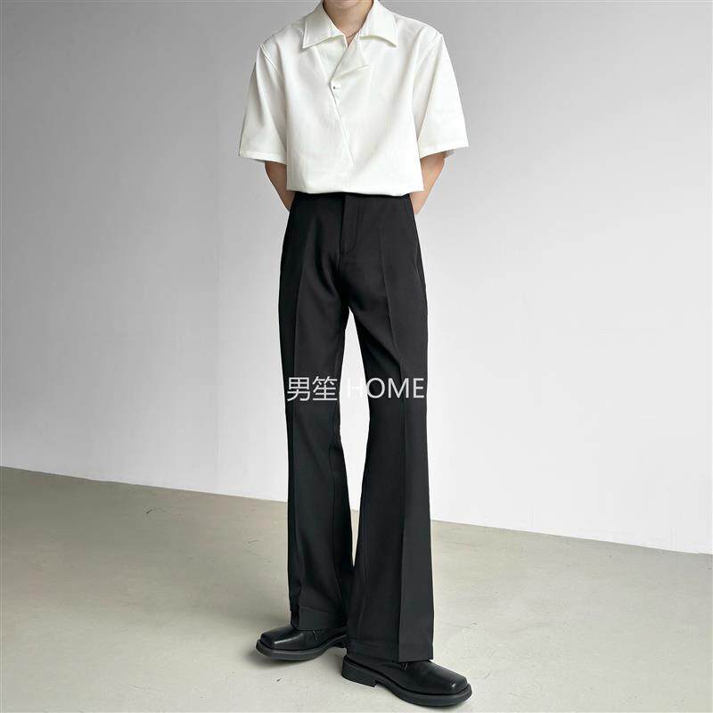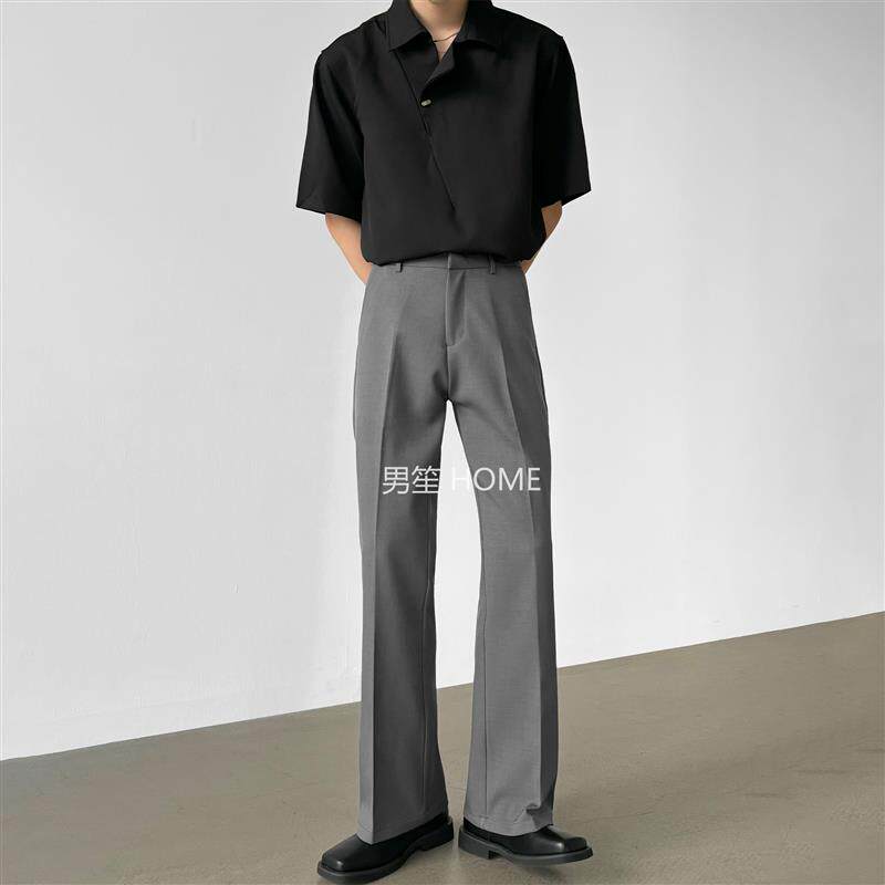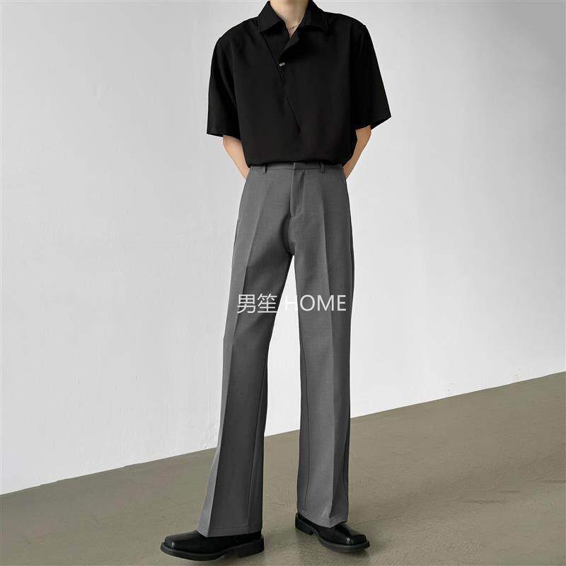裤 男笙HOME2025夏季 韩系休闲直筒宽松微喇西装 高腰微喇西裤 男 薄款