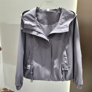 女装 韩系运动风连帽短外套女春季 百搭宽松减龄夹克上衣商场同款