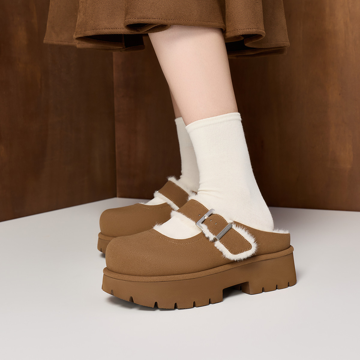 百搭厚底棉拖鞋 保暖防滑时尚 包跟外穿 冬季 chikoku汉堡雪地靴女款