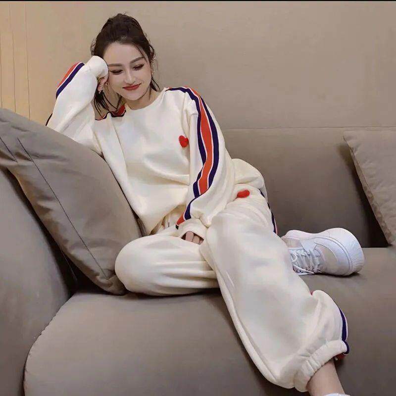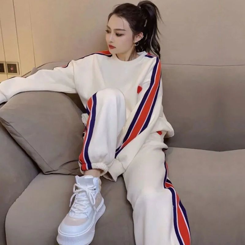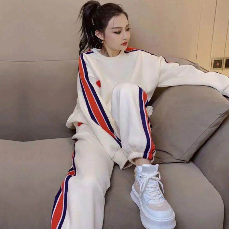 女春秋季 休闲运动套装 气质宽松时尚 长袖 两件套 2025新款 束脚裤 大码