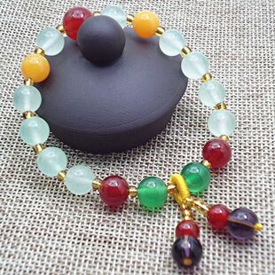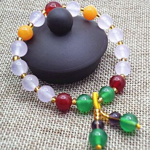 女时尚 女士石紫水晶手链民族风潮串珠水晶手链玉髓手饰