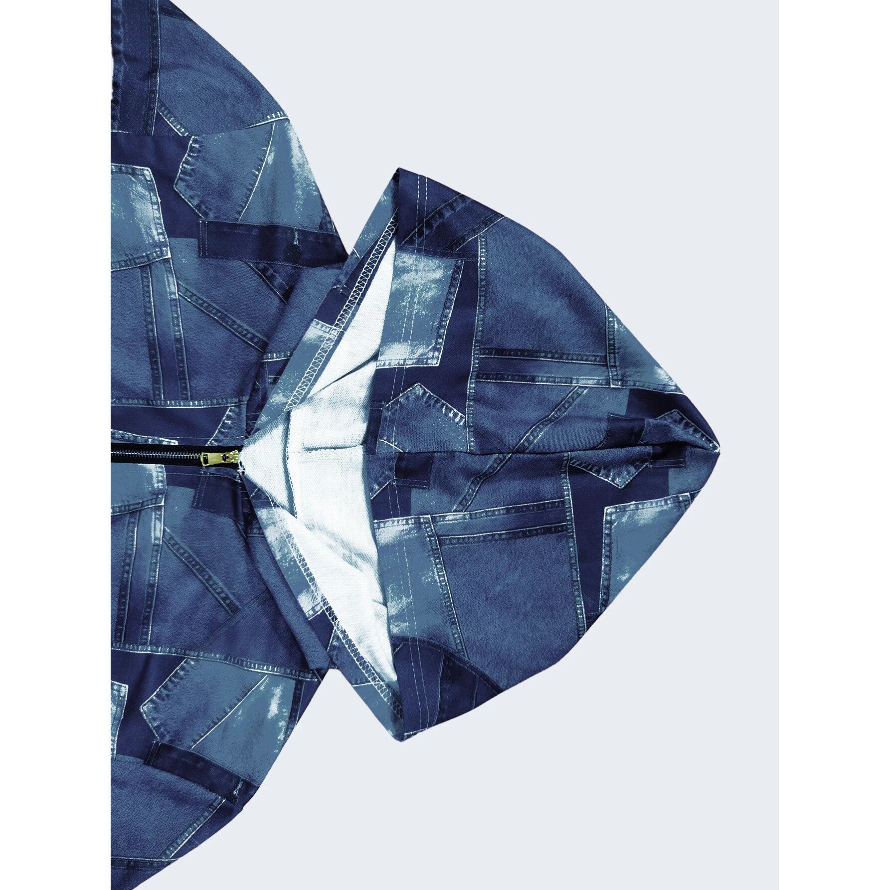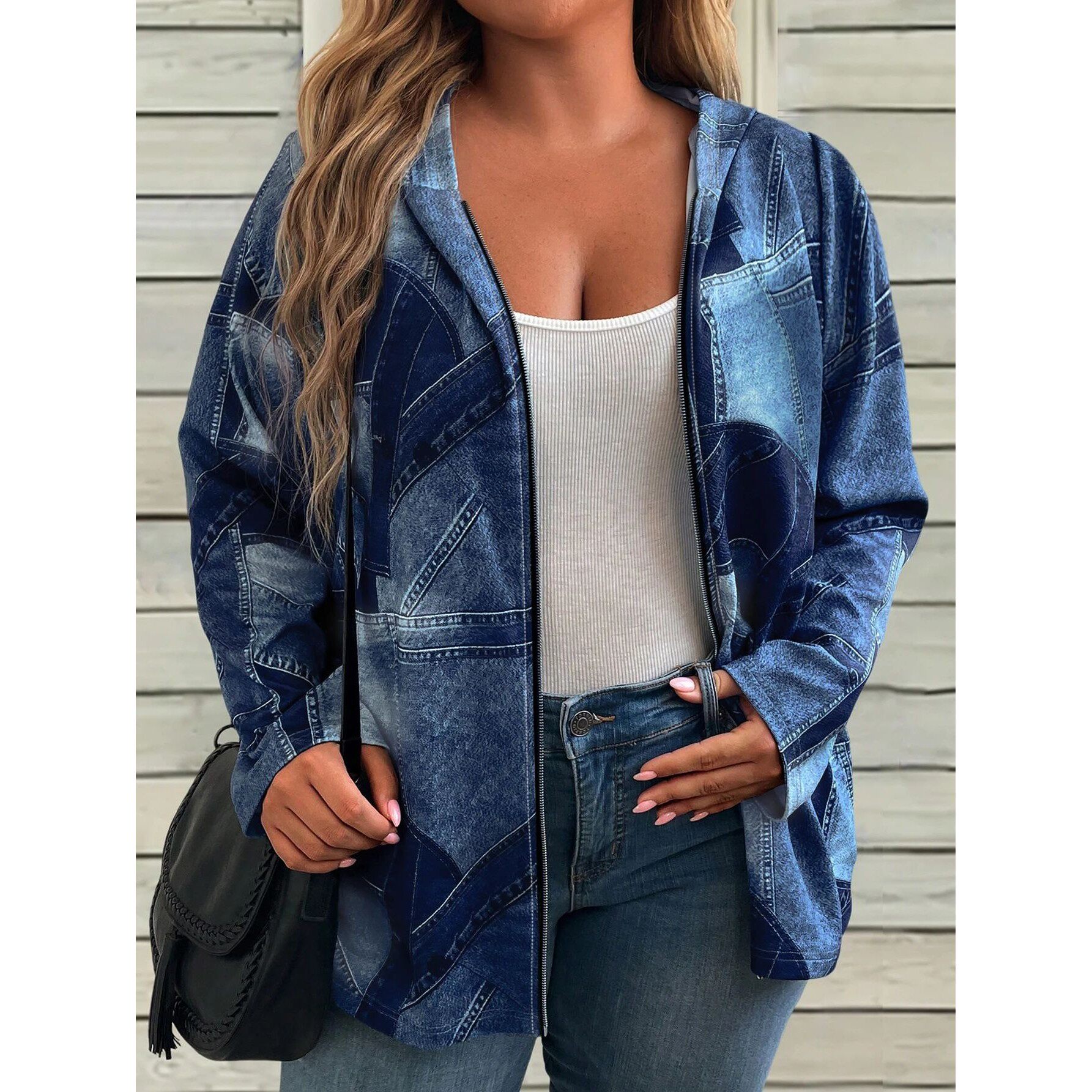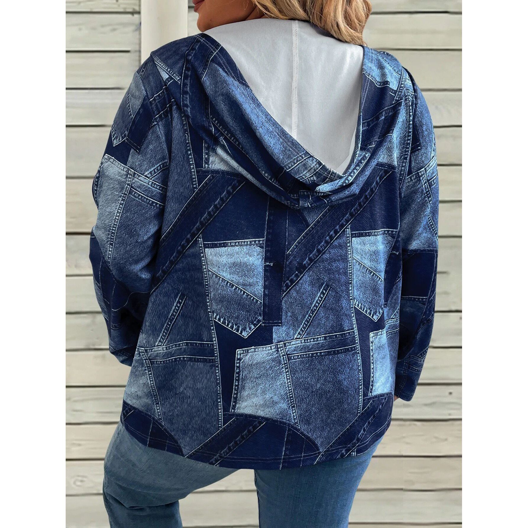 Hoodie Women Casual Zip Patchwork Denim Size Plus
