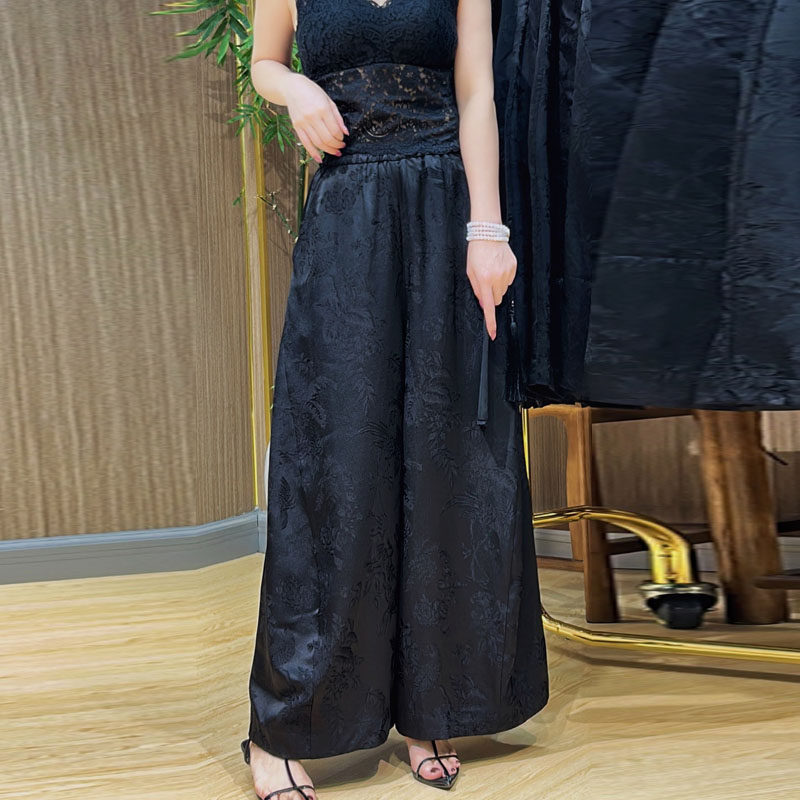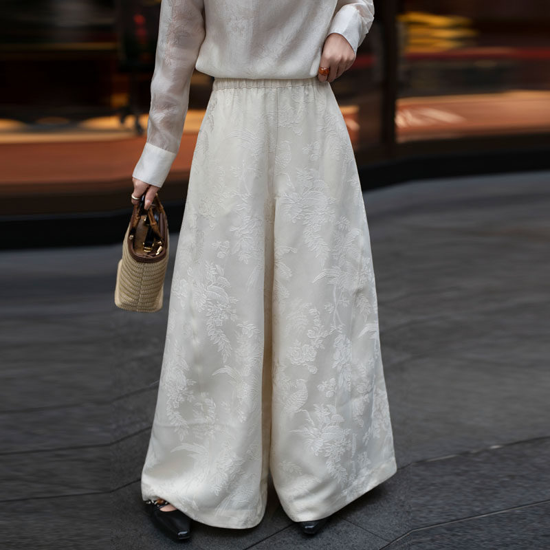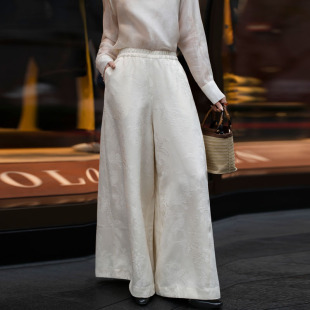 栖谷 百搭气质裤 春秋爆款 新中式 子 人丝喜鹊报喜提花百搭阔腿裤