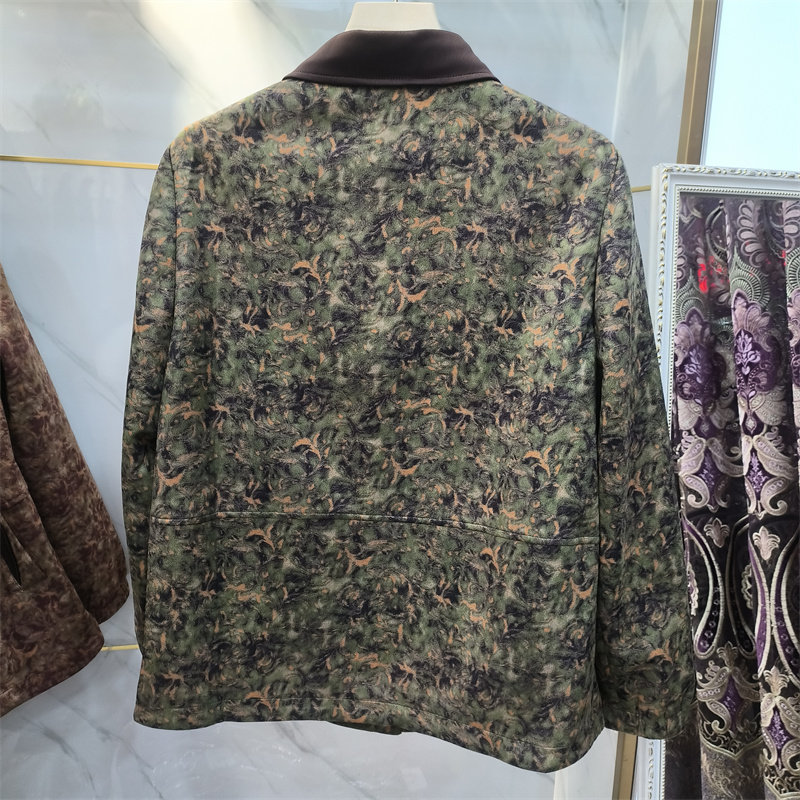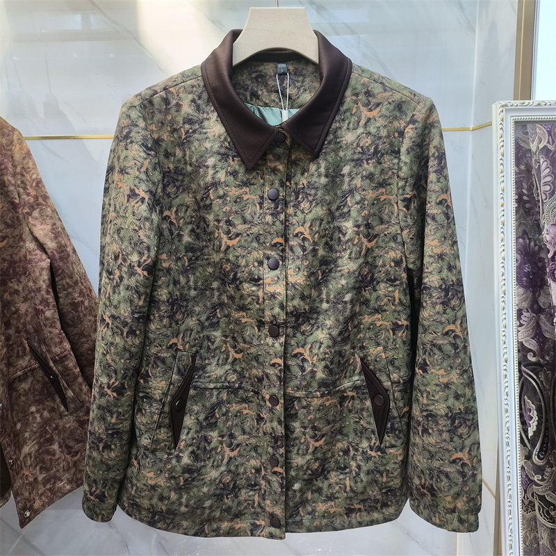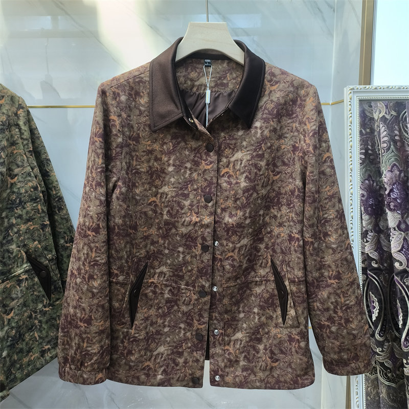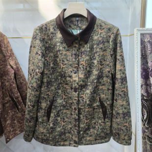 商场同款 宽松翻领纽扣夹克中年妈妈轻奢外套 复古印花短外套女春季