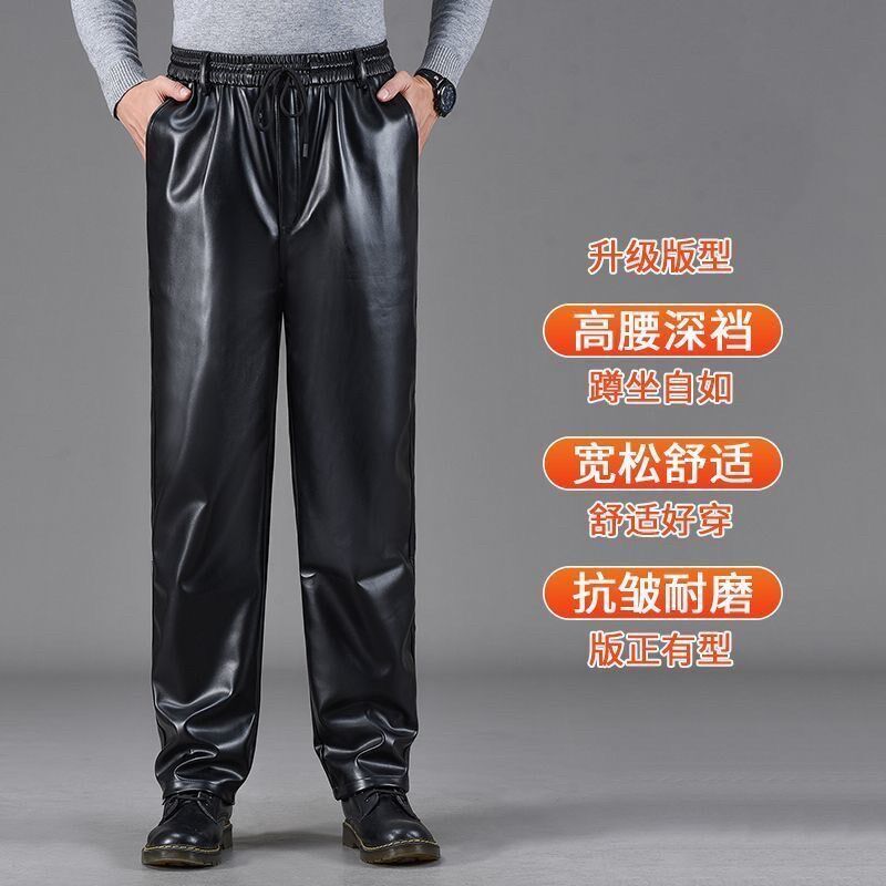 皮裤 男加绒宽松防水防油工作服劳保耐磨外卖L骑行摩托车PU软皮裤