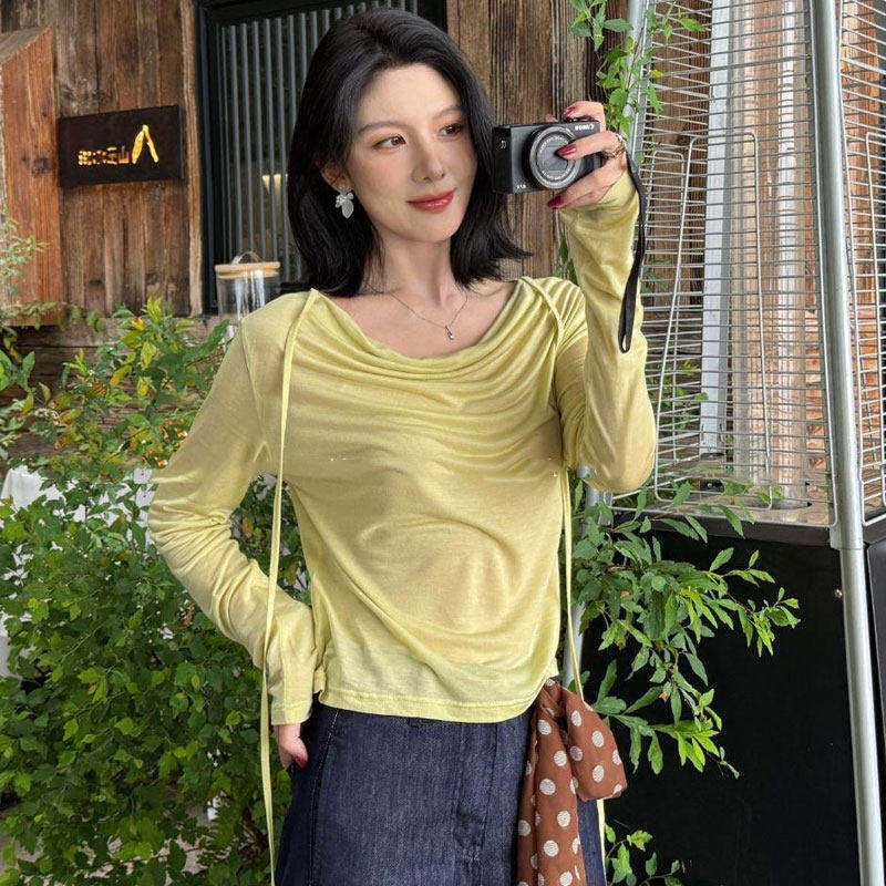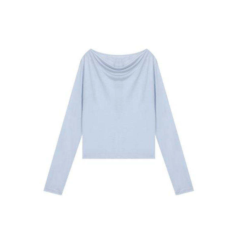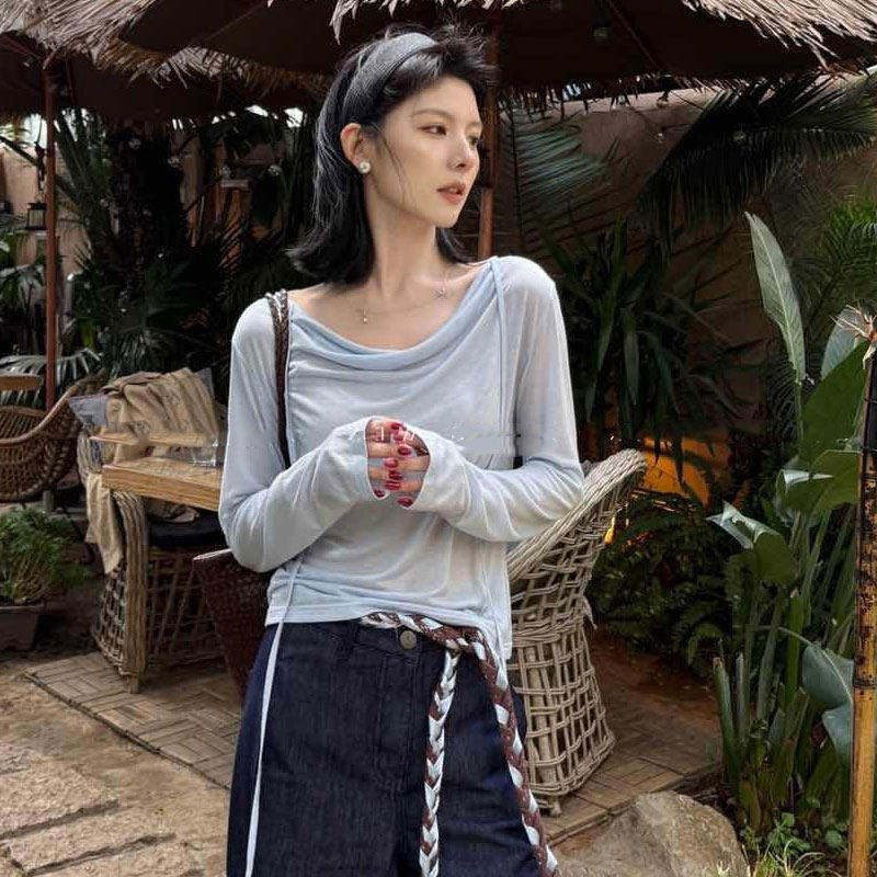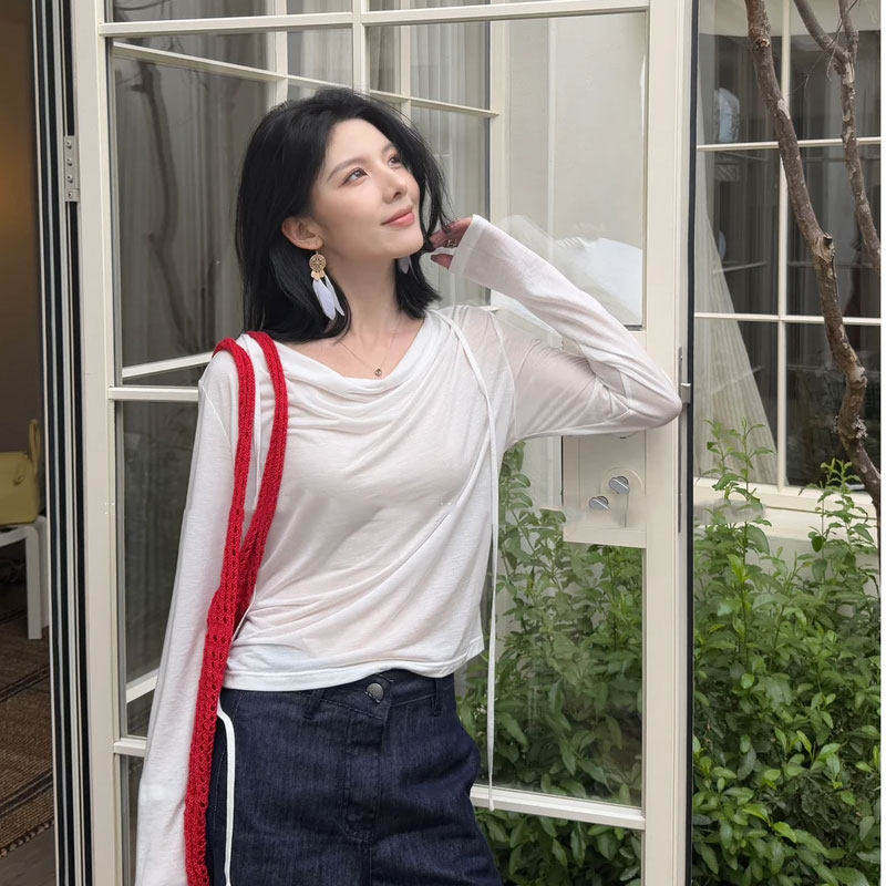罩衫 一字领白色长袖 防晒清纯系掐腰度假T恤 法式 2025夏季