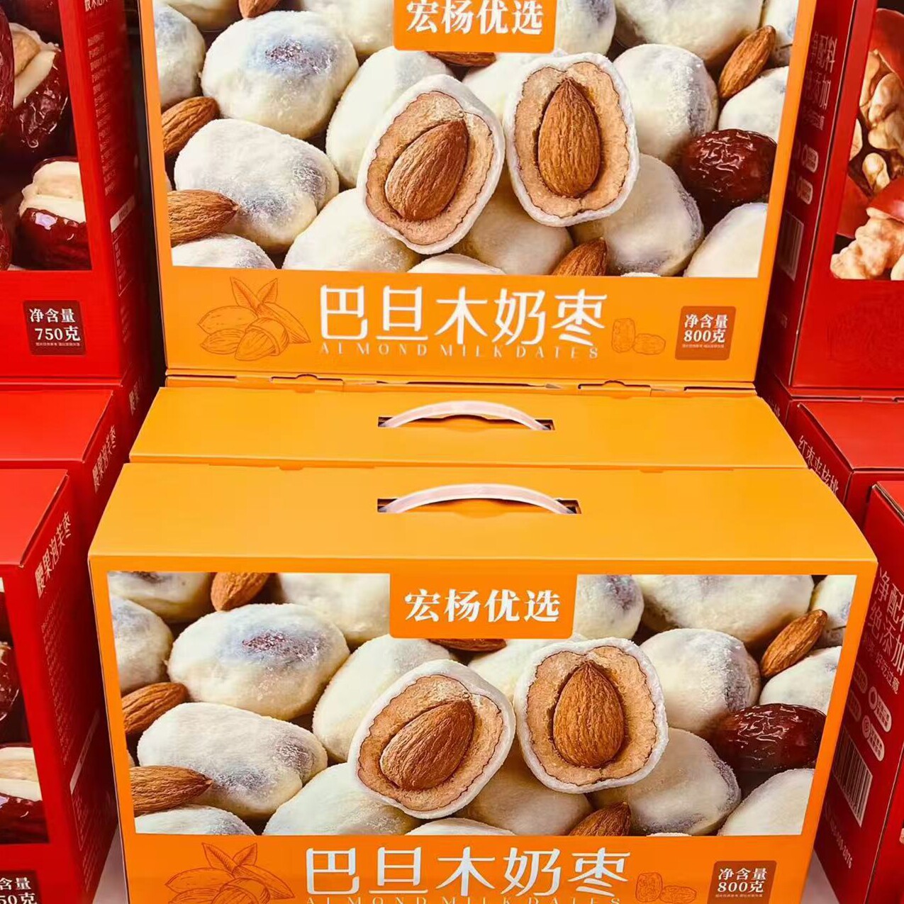 宏扬优选巴旦木奶枣腰果泡芙枣去皮去核枣750g礼盒装 免洗即食零食