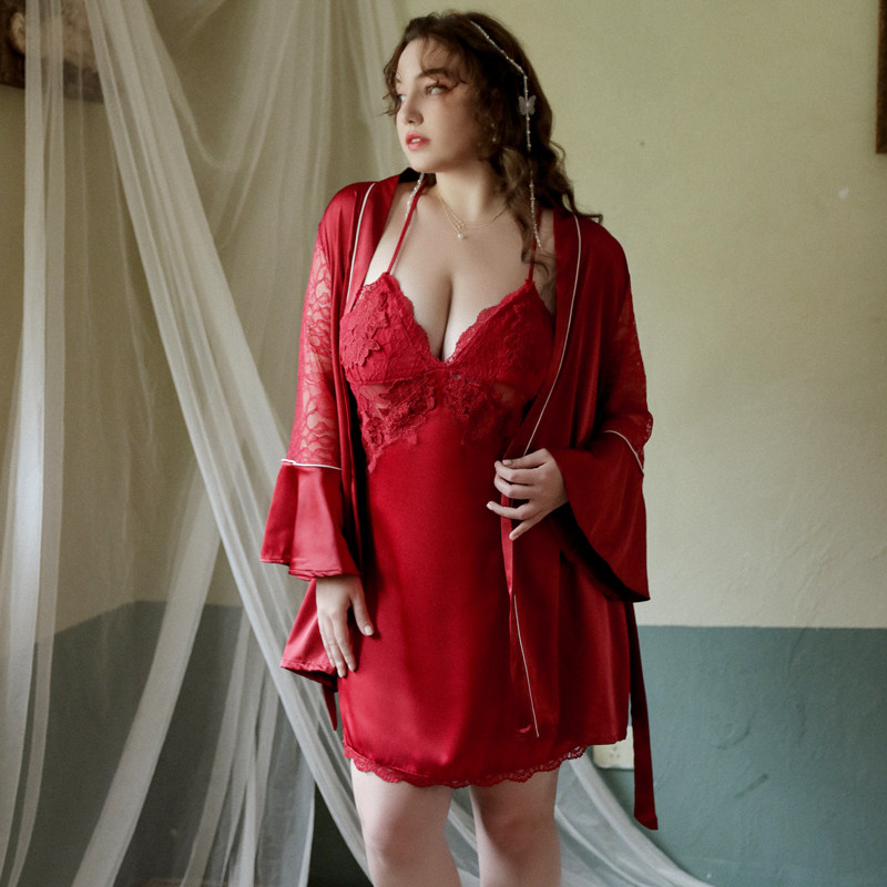 睡衣睡袍新款 浴袍女伴娘高级感外袍 潮女红色婚礼结婚晨袍新娘大码