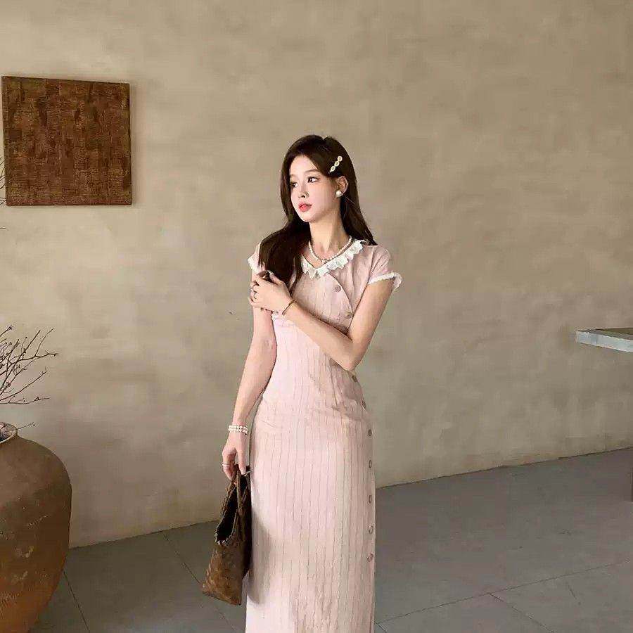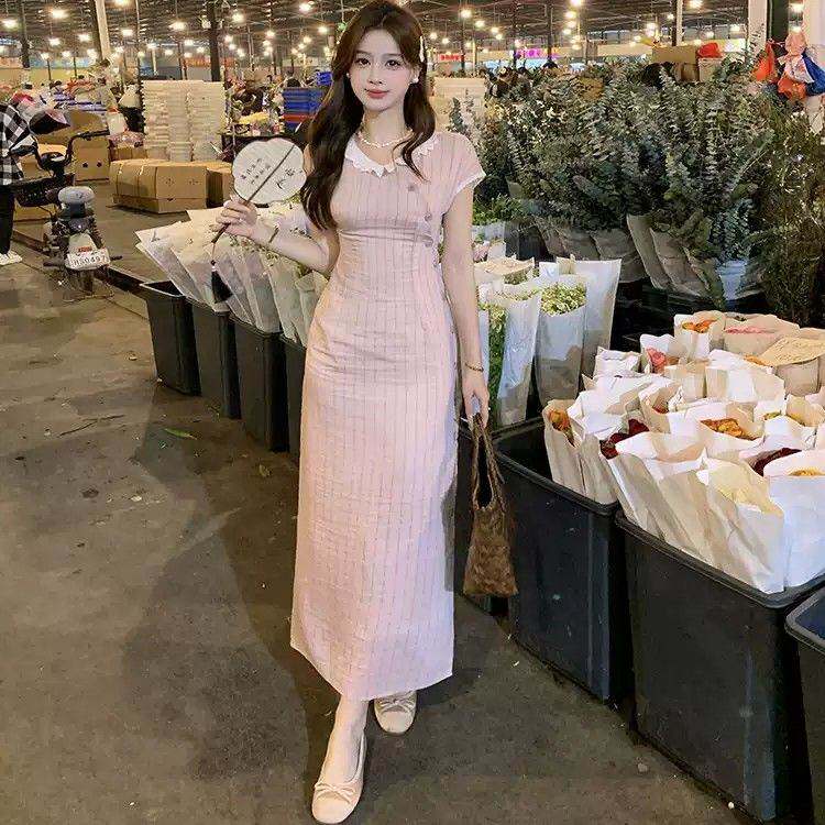包臀裙长款 国风旗袍粉色气质连衣裙收腰显瘦修身 女 新中式 2026夏季
