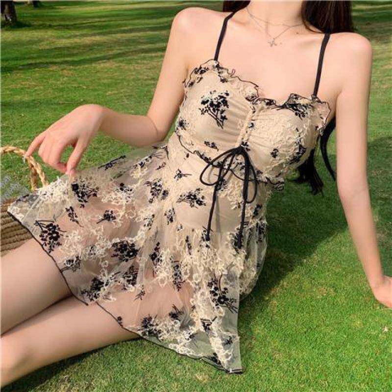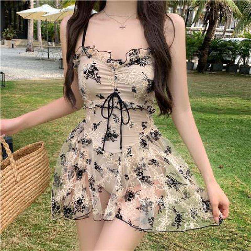 遮肚显瘦气质辣妹温泉泳装 韩系吊带裙式 年新款 泳衣女连体裙式