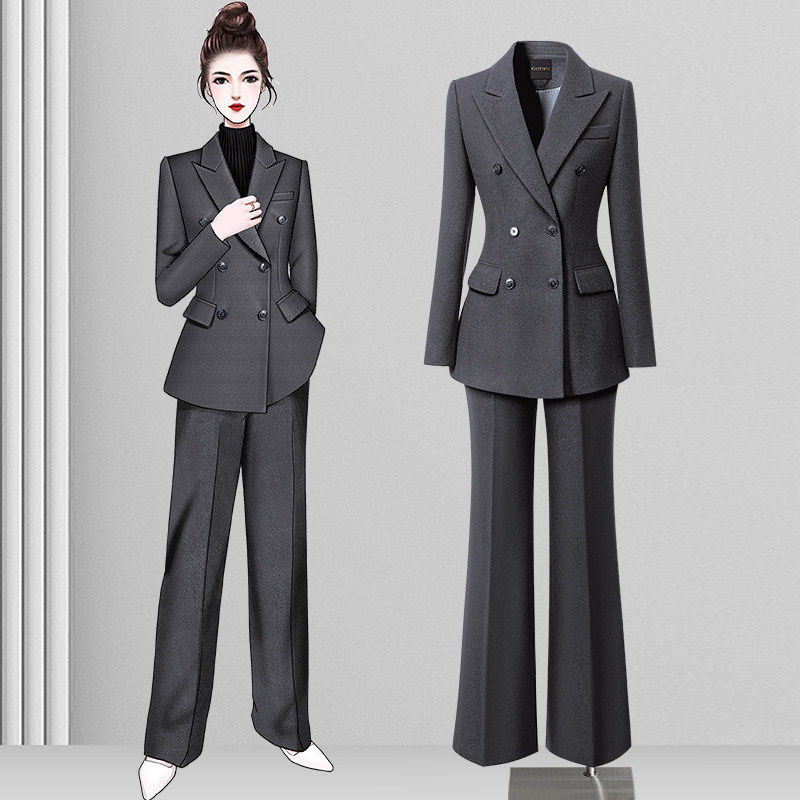 OL通勤上班工作服 女春秋高级感加厚毛呢西服职业经理正装 西装 套装