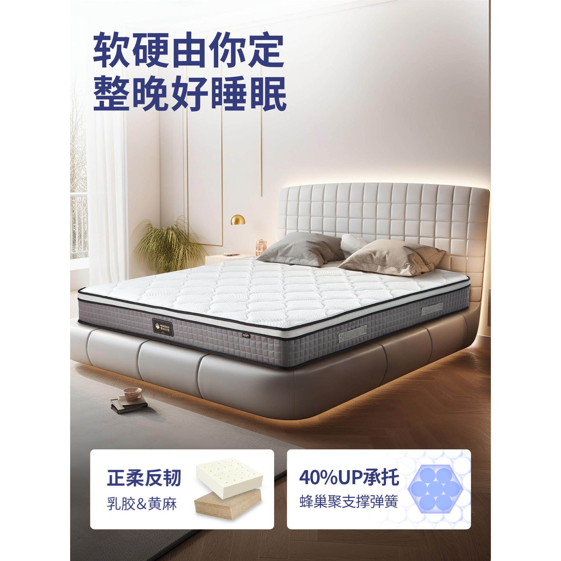 孟神加厚2cm乳胶席梦思床垫进口脊柱保护黄麻蜂窝弹簧床垫1.8m凡