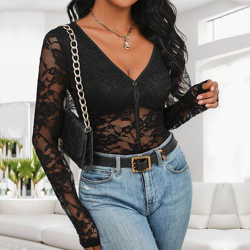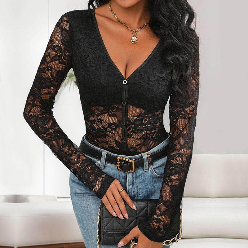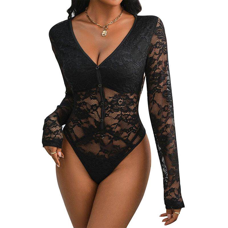 long 蕾丝长袖 sleeved jumpsuit 领连体衣 collar Lace