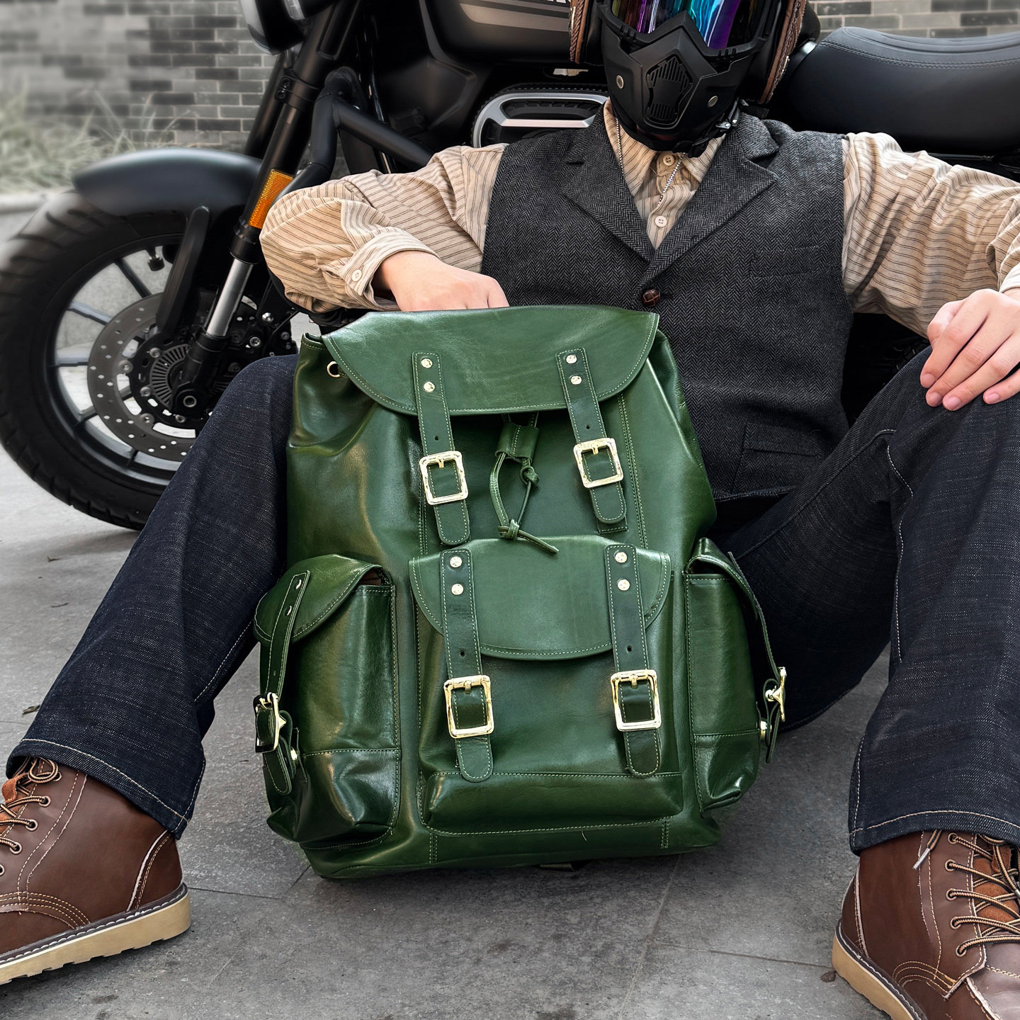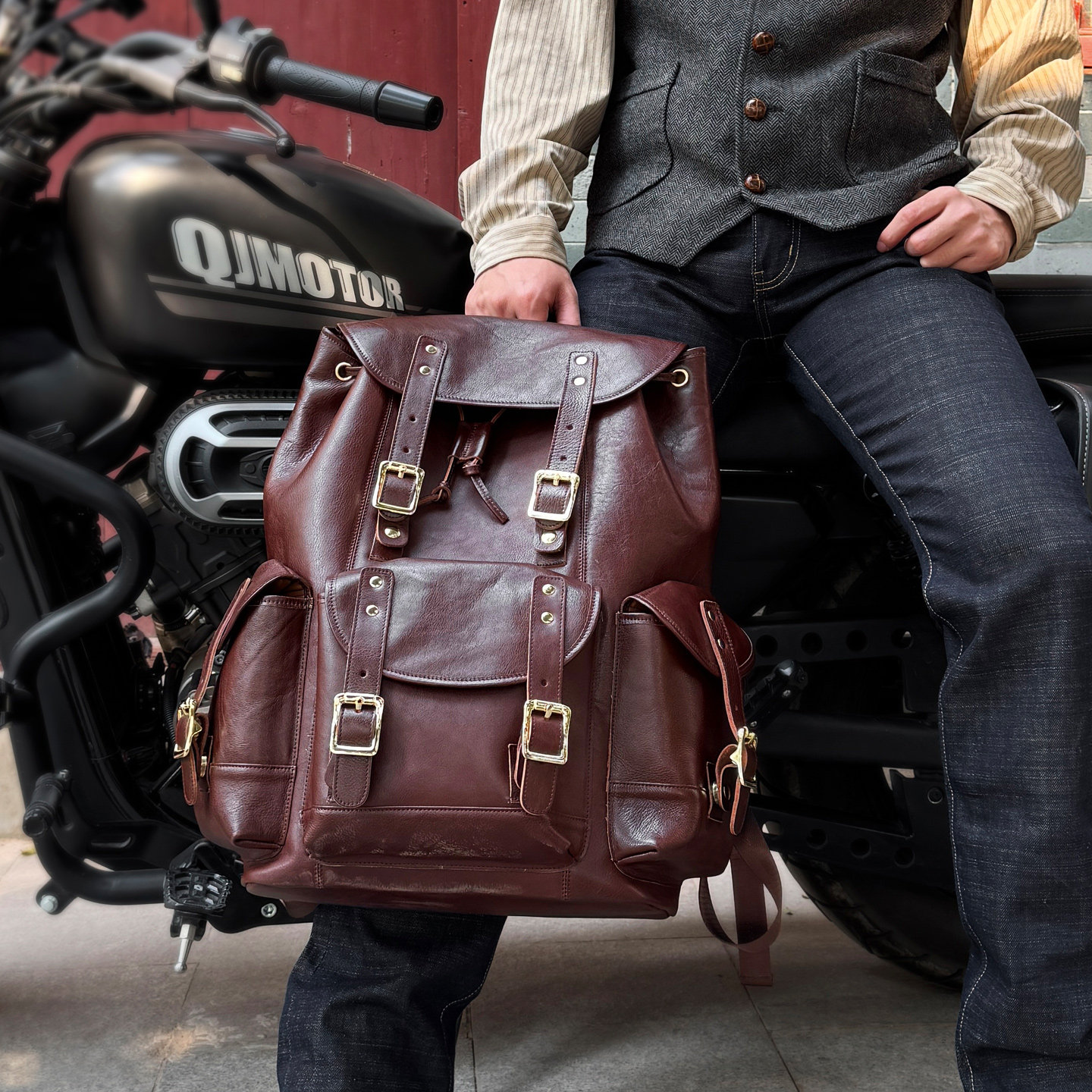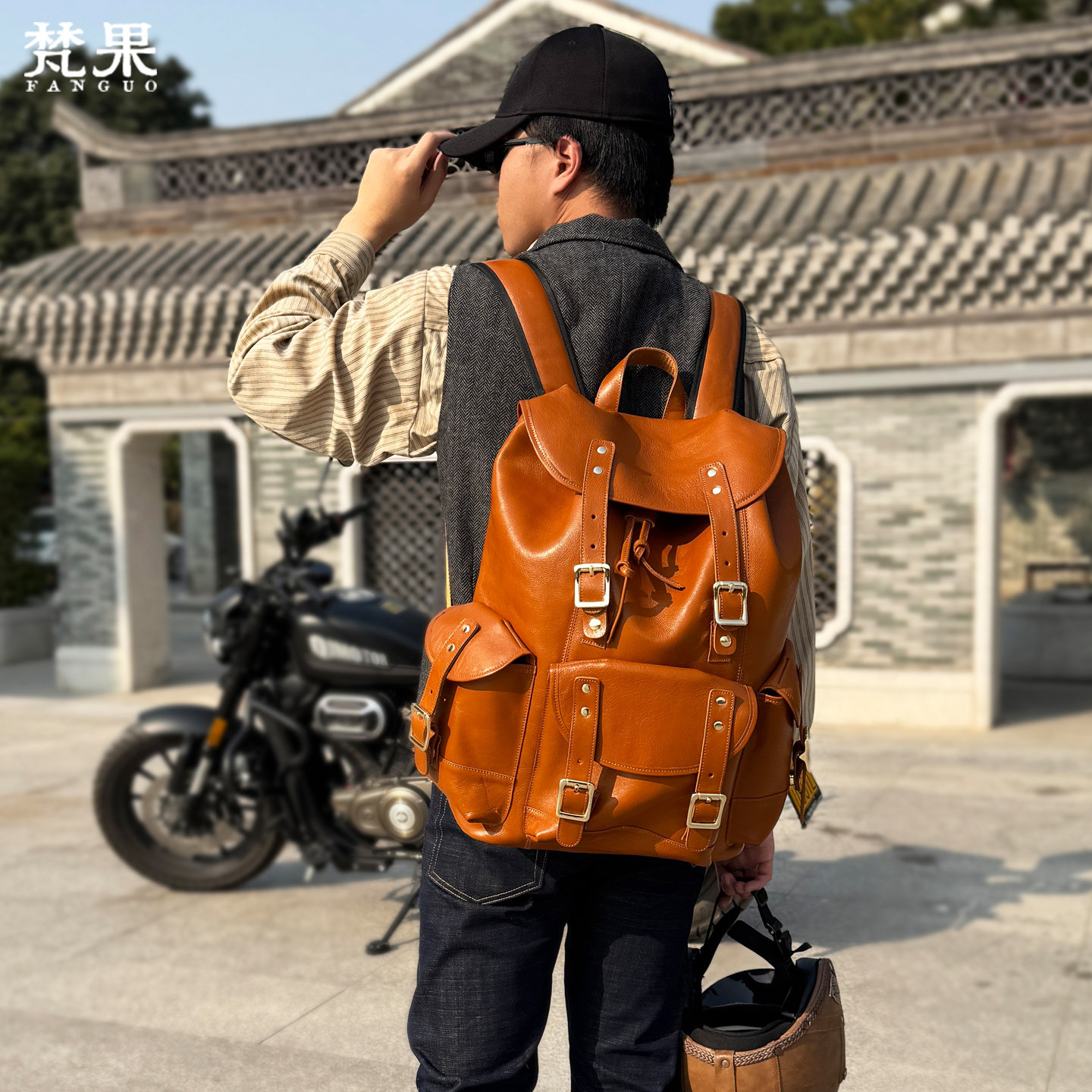 FANGO真皮通勤骑行双肩包头层牛皮机能旅行背包大容量电脑书包潮
