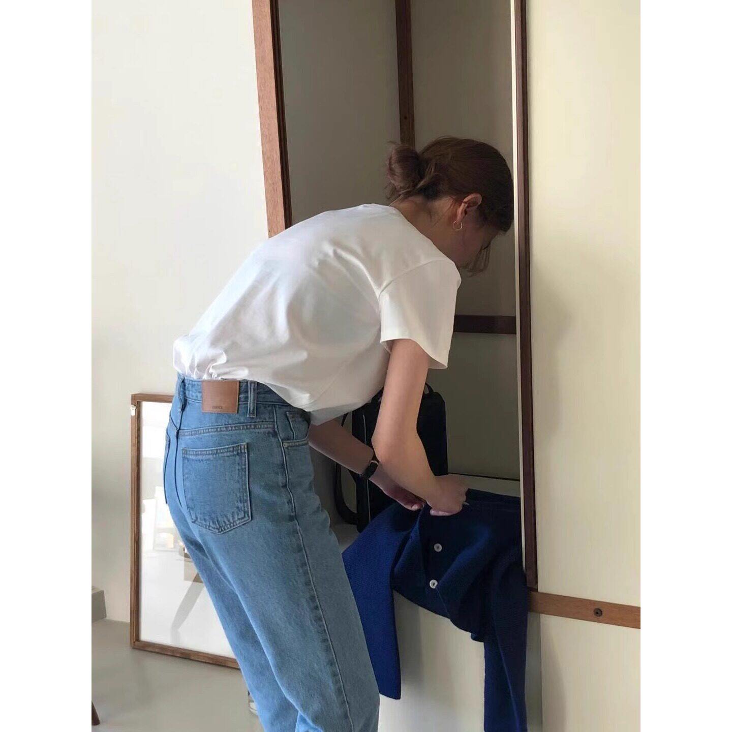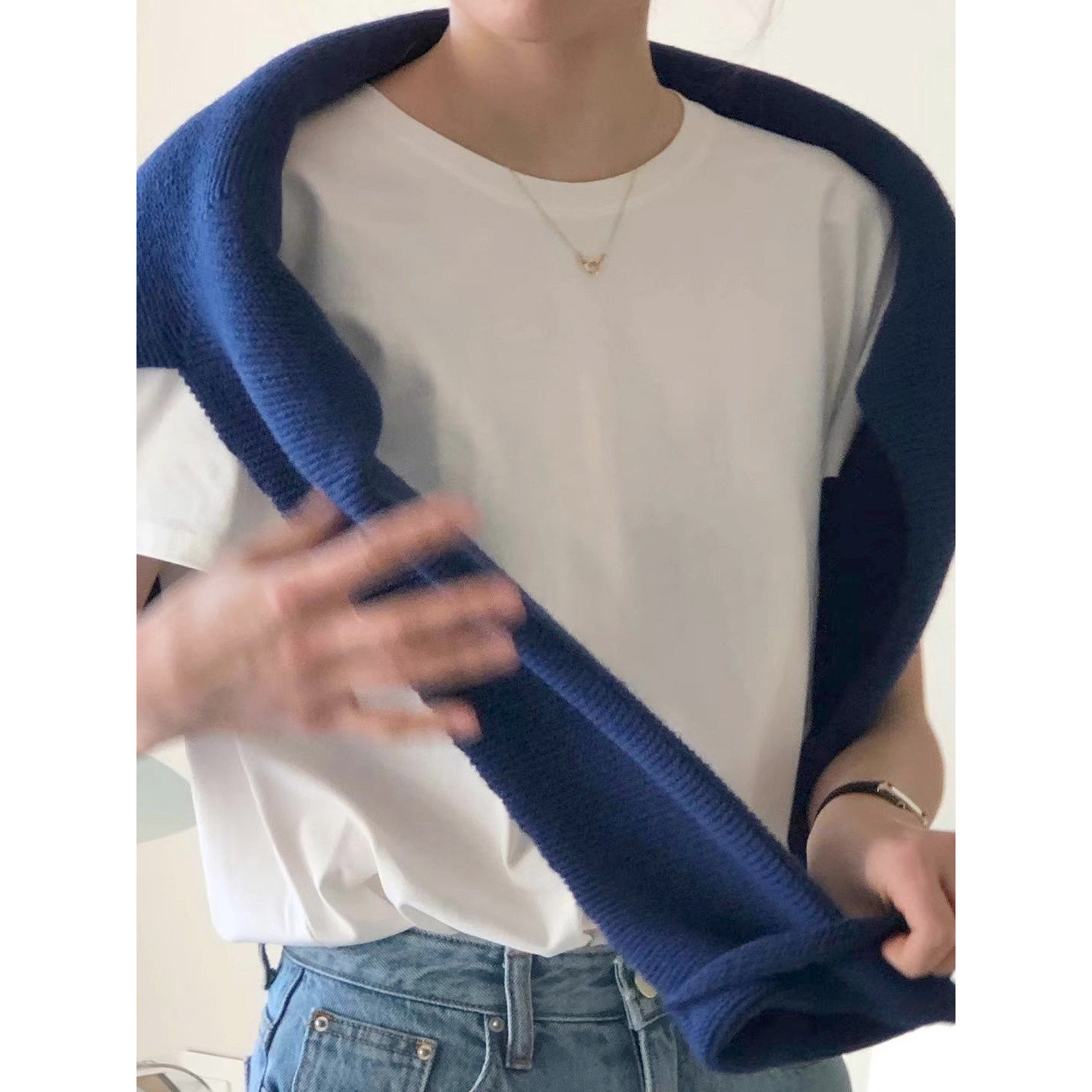 上衣 女简约风叠穿内搭宽松基础款 纯棉白色T恤2025夏季 正肩短袖