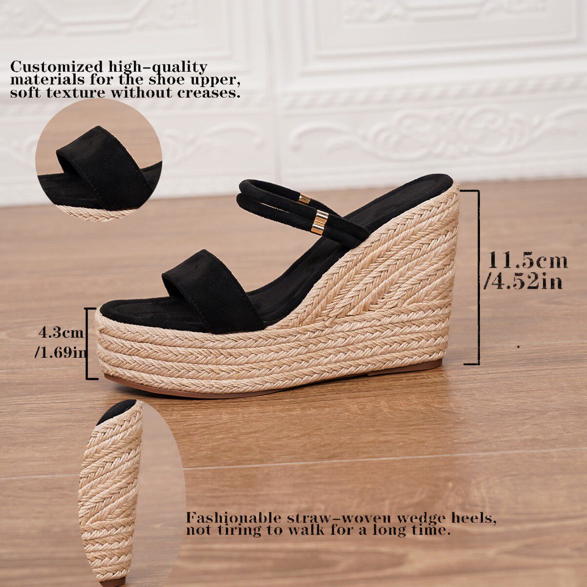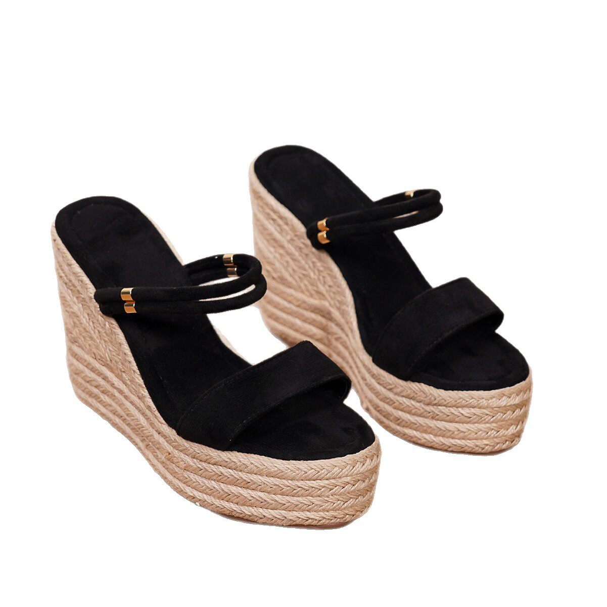 麻绳包跟厚底防水台高跟鞋 外贸大码 新款 2026夏季 草编麻绳坡跟凉鞋