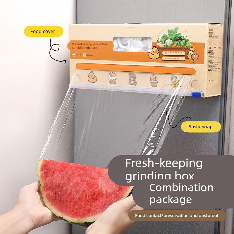 一次性保鲜膜套食品级专用带切割器磁吸家用冰箱厨房免撕切割神器