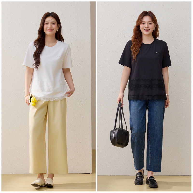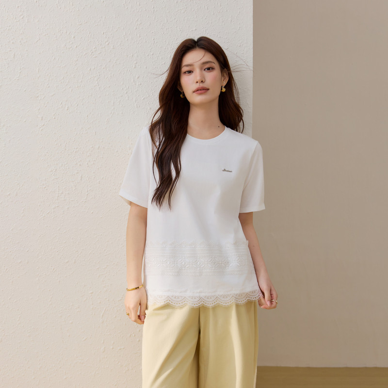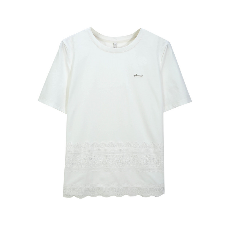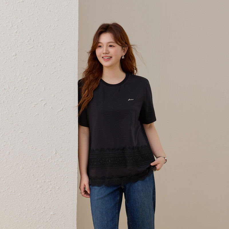 设计感上衣胖mm2026夏装 女装 纤莉秀大码 新款 波浪花边下摆T恤