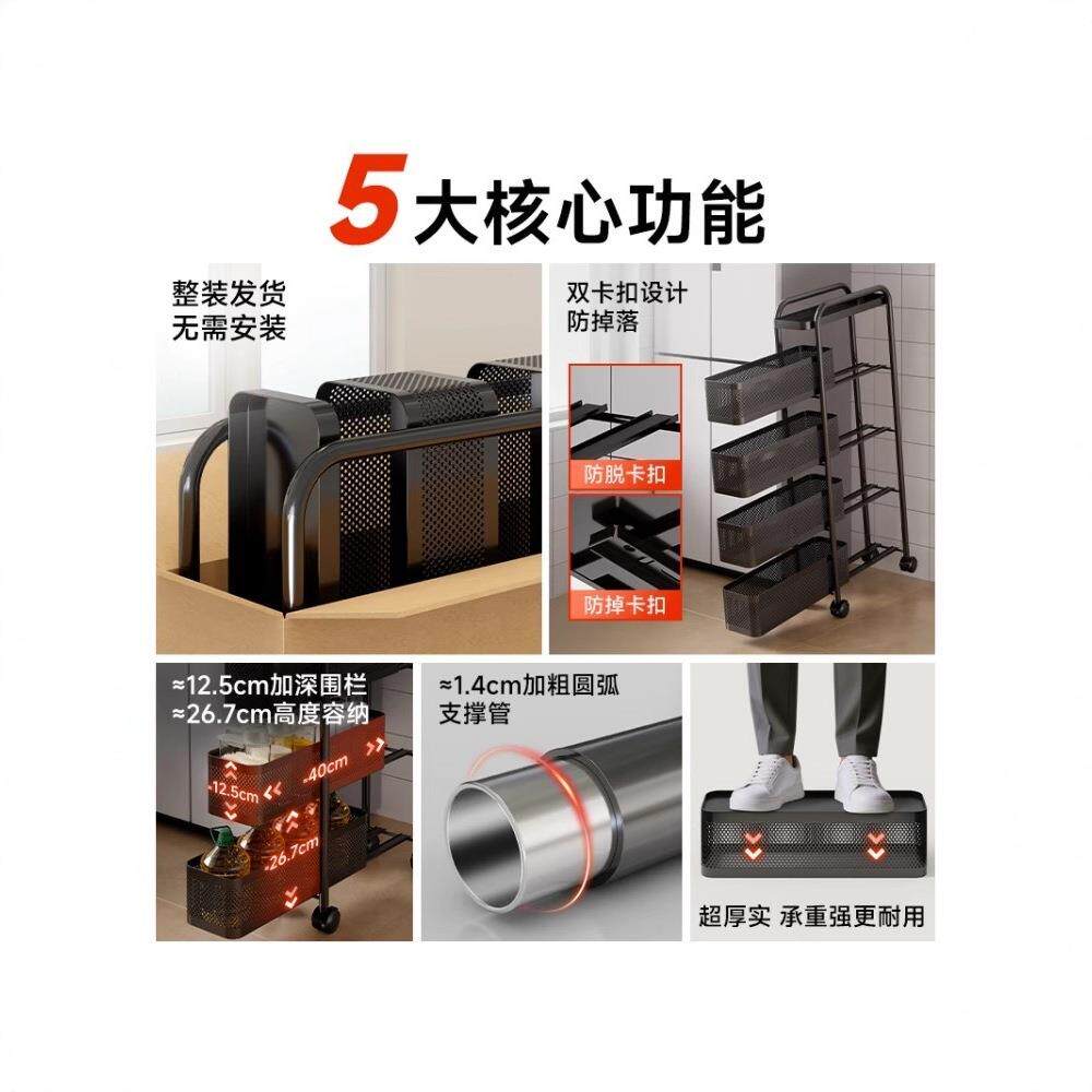 夹缝可mm1019 a置物架不钢小推车锈厨房冰窄缝隙收纳柜移动卫生间