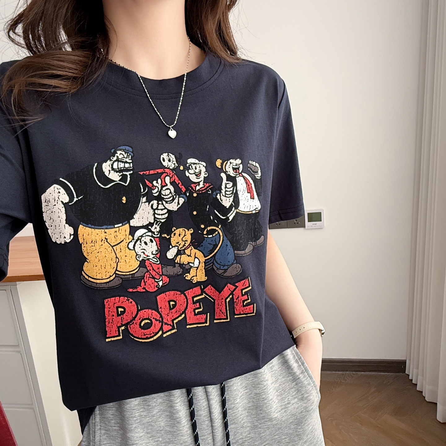 夏装 卡通印花宽松休闲遮肚子半袖 短袖 胖mm美式 t恤女大码 2026新款