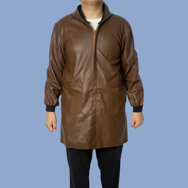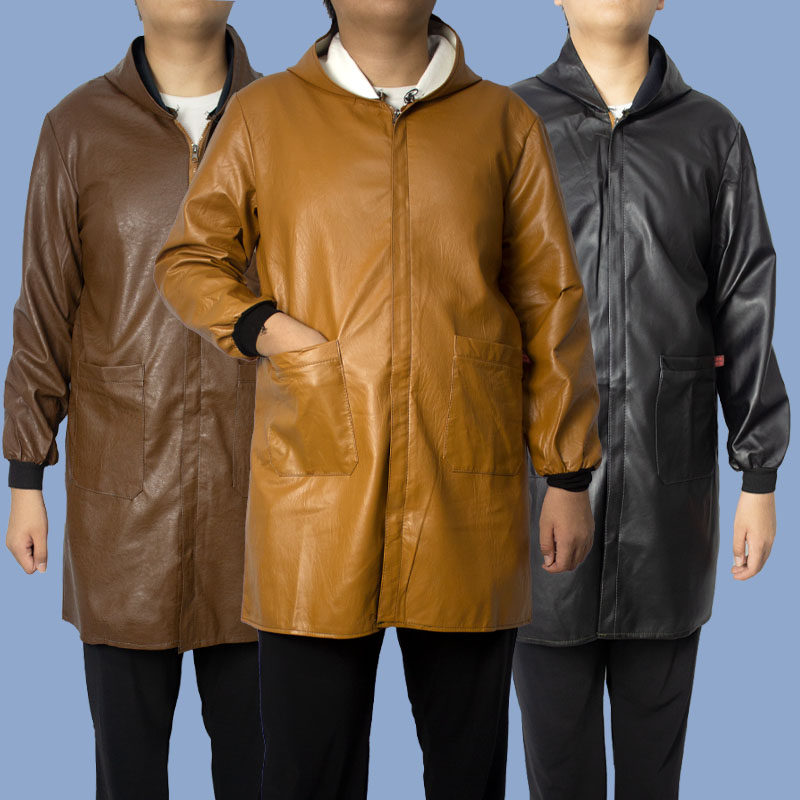 皮革大褂水产工作服屠宰养殖鸡猪罩衣化工防油防水防风加绒PU皮衣