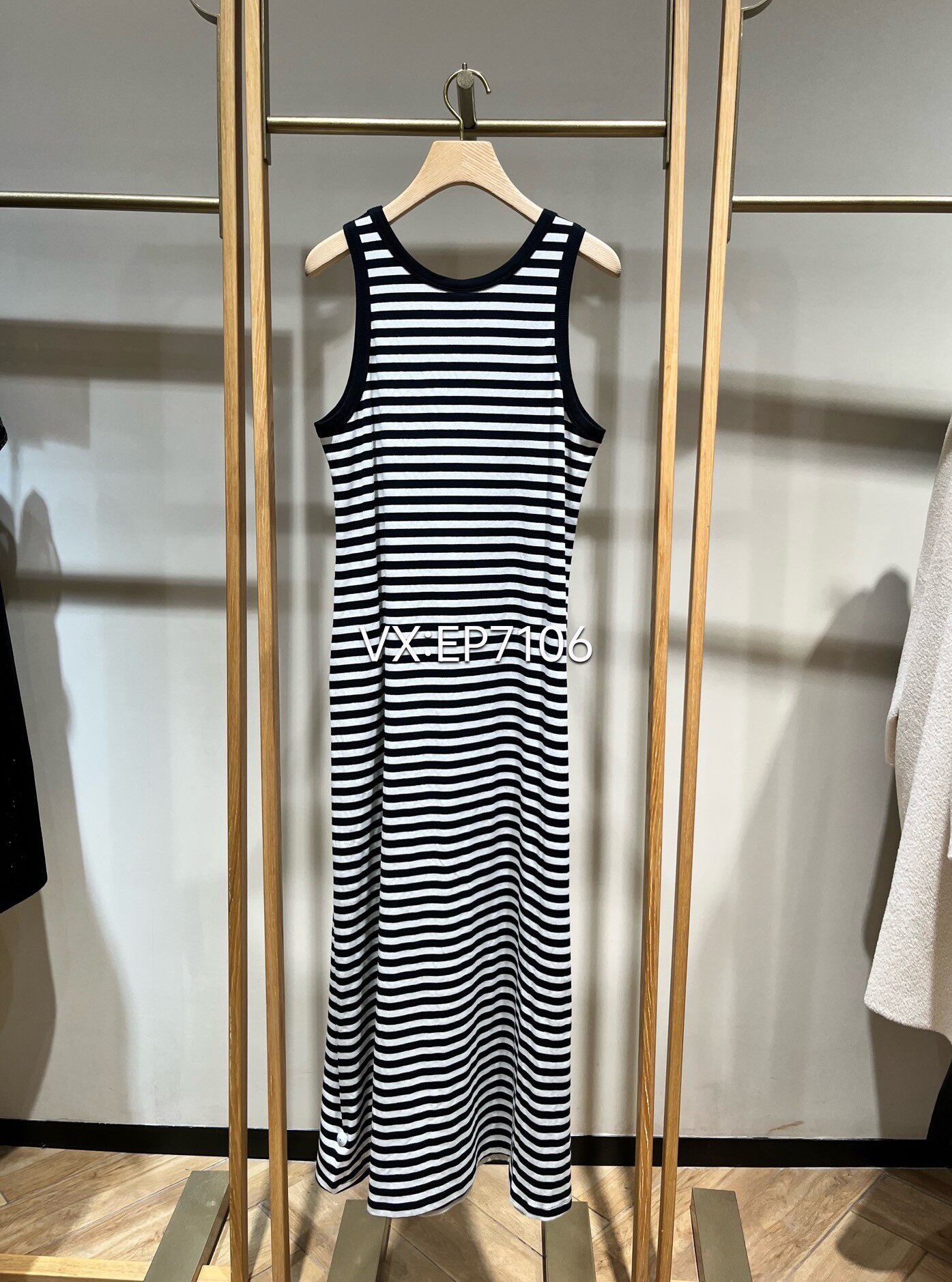 1299 EGKEC4141A 黑色棉质宽松圆领条纹背心无袖 连衣裙