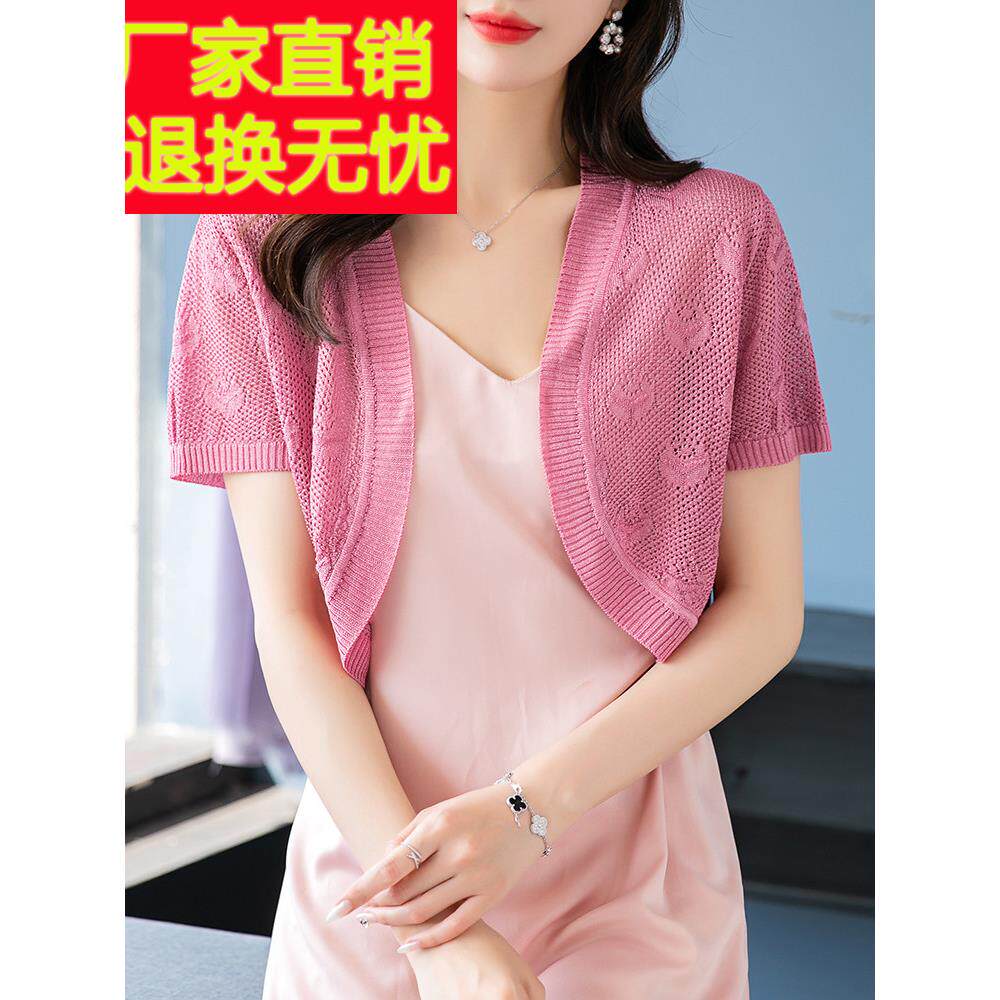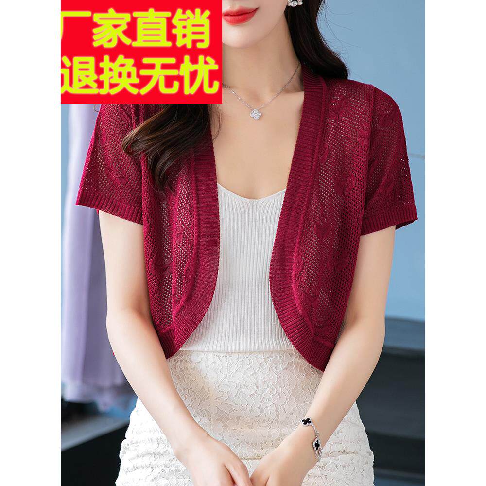 超短款 妈妈装 女开衫 薄针织衫 披肩外套镂空小坎肩配裙子 桑蚕丝夏季