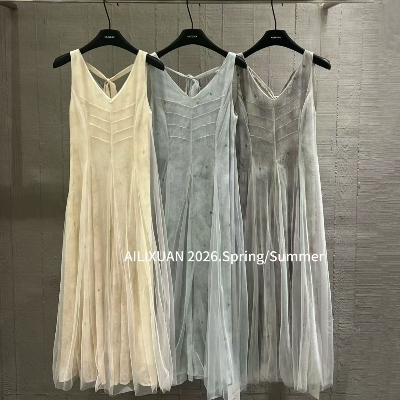 扎染V领网纱背心连衣裙s26127w289 时尚 十三行拿货2026春新款 韩版