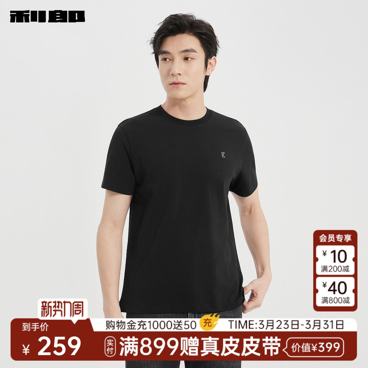 纯色商务圆领提花弹力短袖 利郎官方正品 休闲男装 26夏季 男 T恤男士