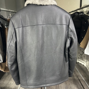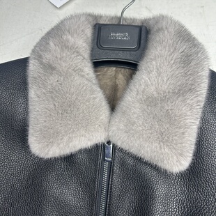 鹿皮皮衣进口银蓝水貂内胆翻领真皮皮衣男貂皮大衣