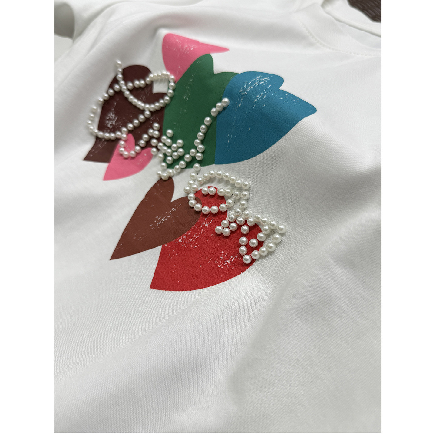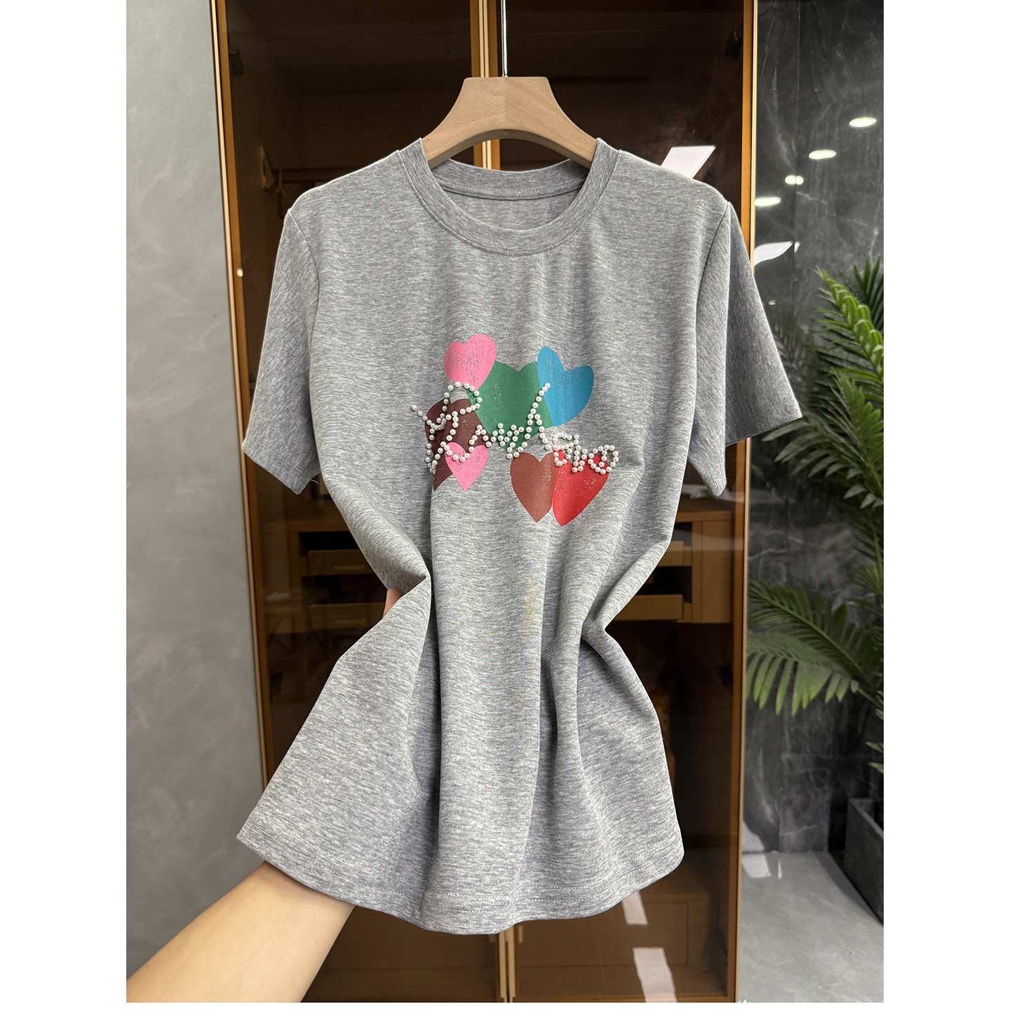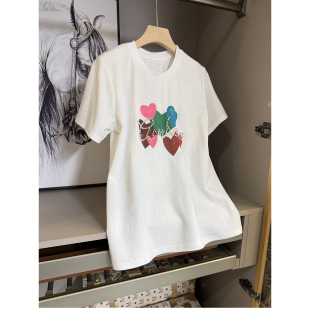 M106008 墙裂推荐 棉T恤女 钉珠印花爱心圆领短袖 JU好穿