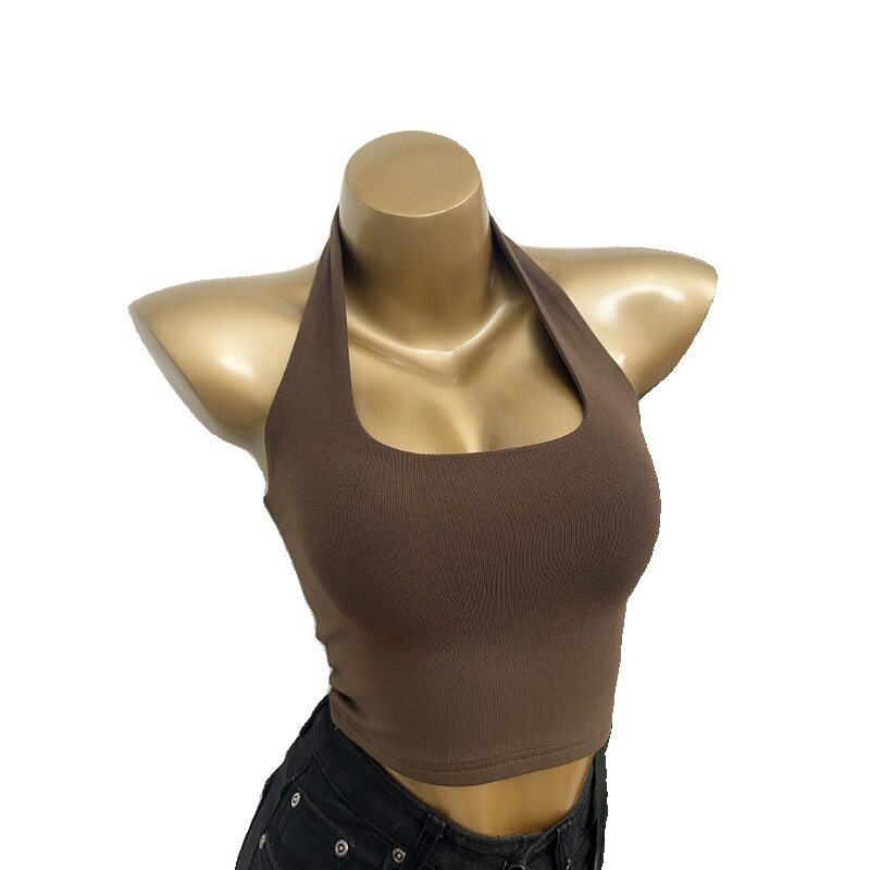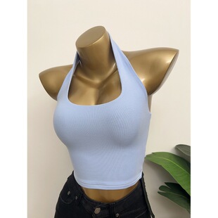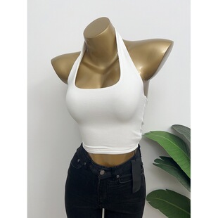 短款 性感百搭漏背挂脖背心女修身 2025夏装 内搭T恤上衣潮 自留