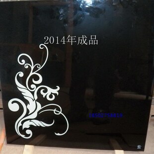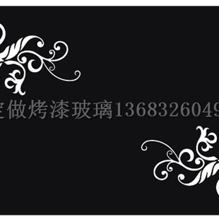 定做厂家电视墙背背漆漆烤漆钢化艺术玻璃电视背景墙桌面黑底白花