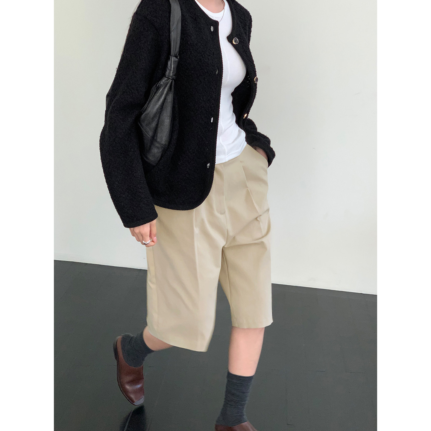 轻熟简约风高腰阔腿百搭休闲裤 adainthepark百慕大五分裤 女夏短裤