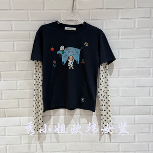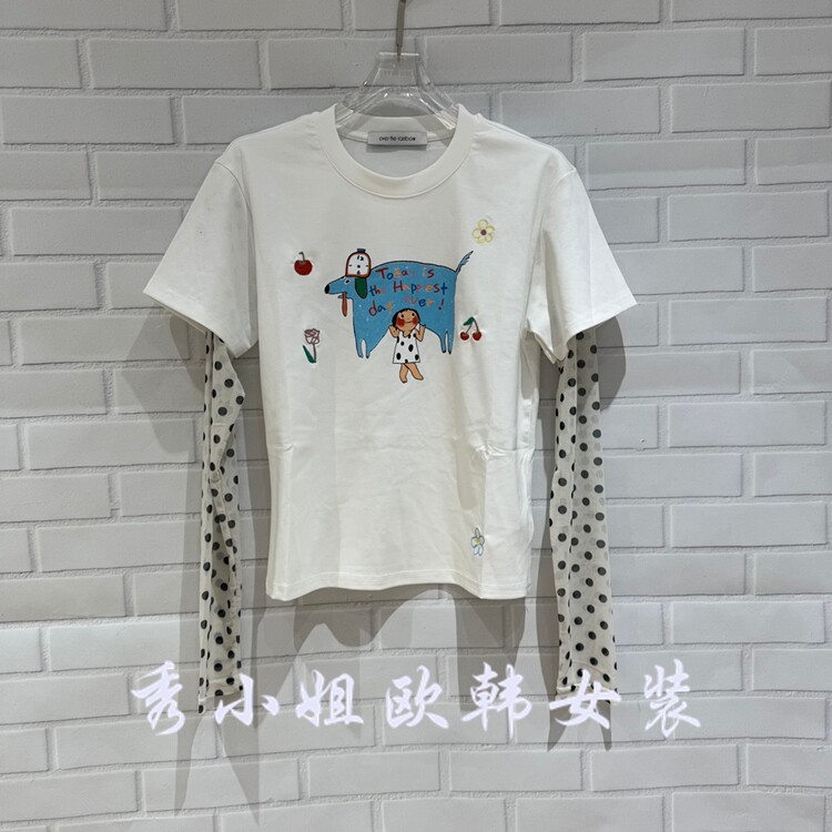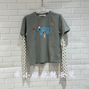 70208 T恤显瘦潮款 欧洲站2026春季 over百搭圆领卡通印花假两件长袖