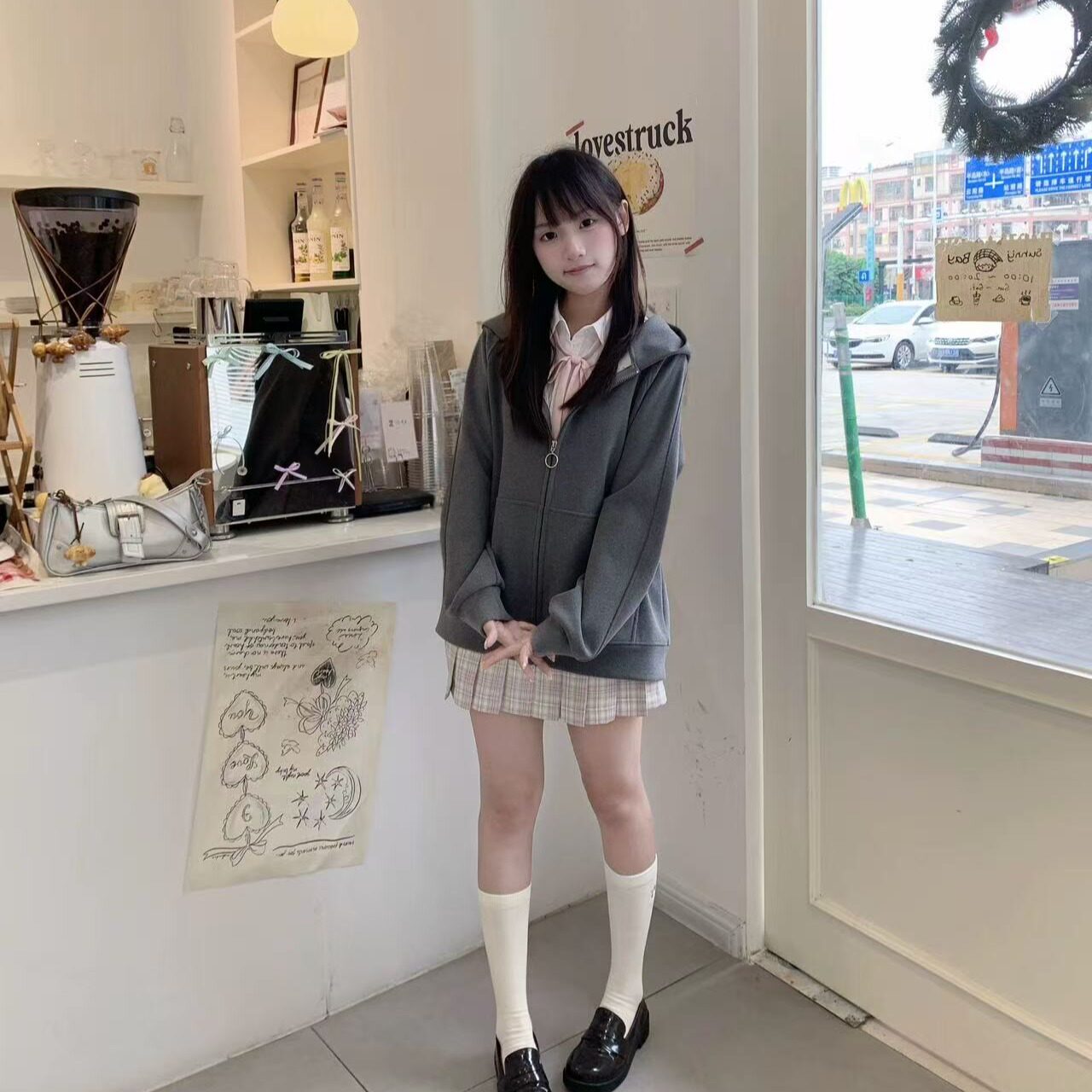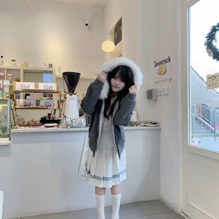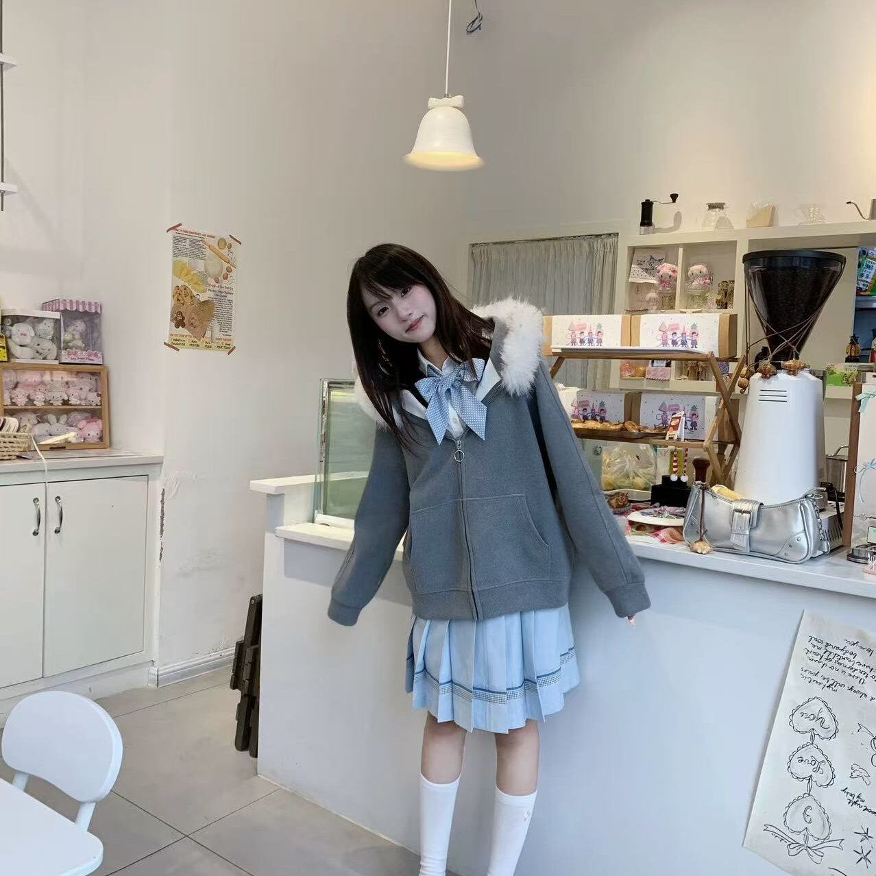 lulucake连帽开衫 宽松日系学院风百搭可拆卸毛领外套女 卫衣jk套装