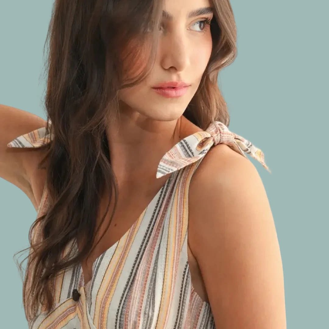 外贸单波西米亚风 波嬉海岸风V领超大摆彩色条纹连衣裙度假裙长裙