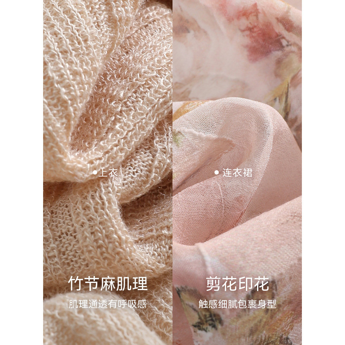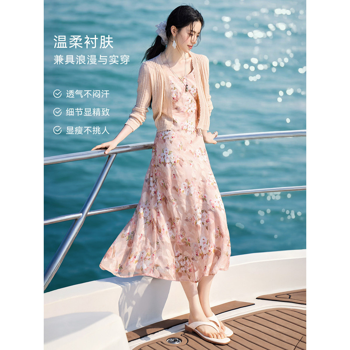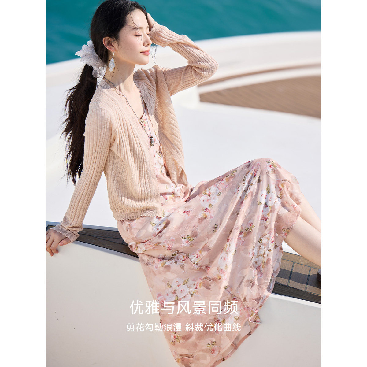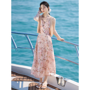 XWI欣未度假风针织吊带连衣裙套装 约会碎花裙两件套 女2026年夏季