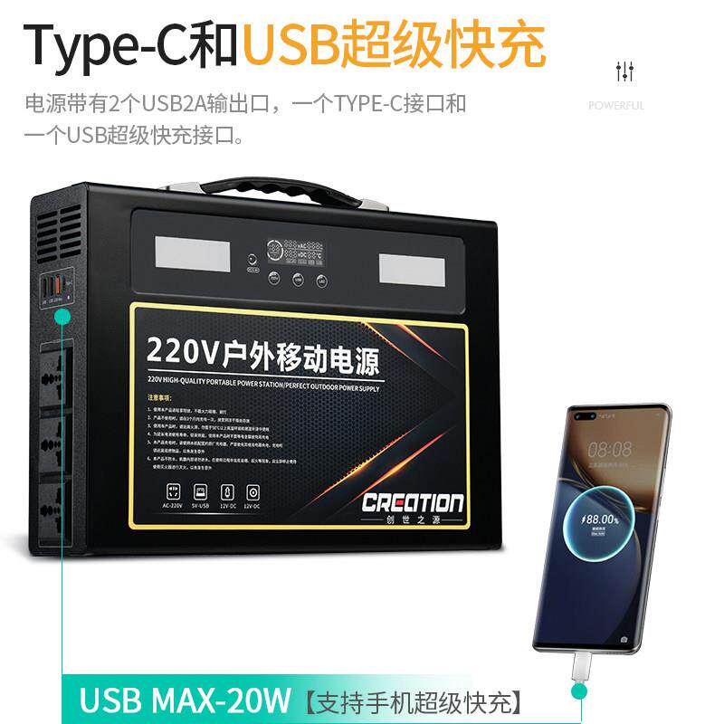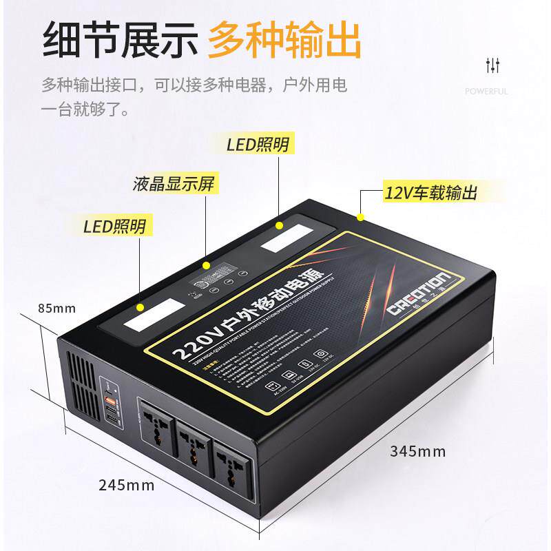 220v户外行动电源大容量可携式 自驾游露营摆摊带插座家用应急太阳