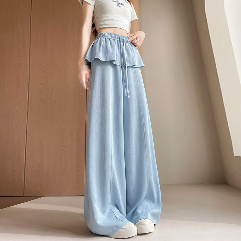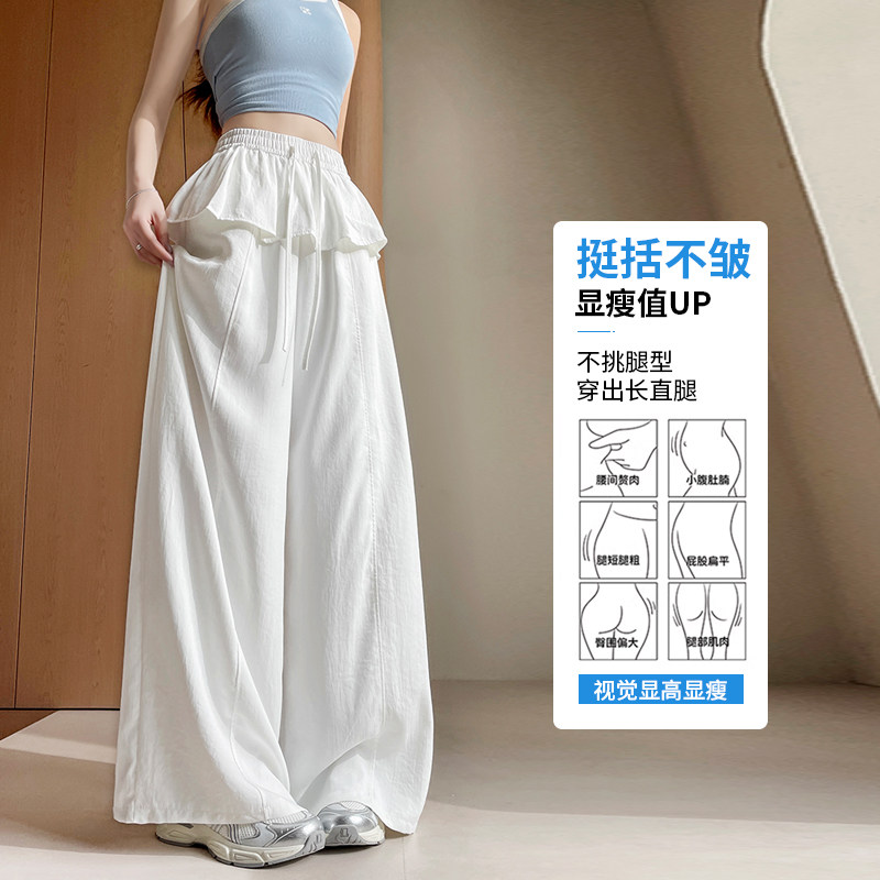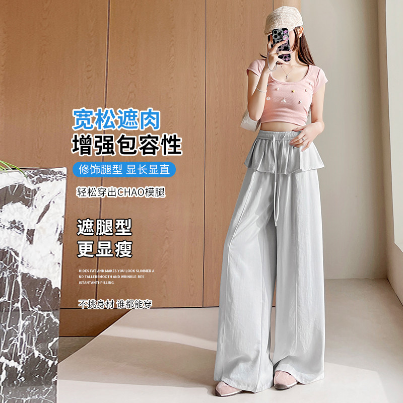 实拍法兰丝滑棉百搭休闲遮屁长裤 女春夏垂感松紧腰系带直筒阔腿裤
