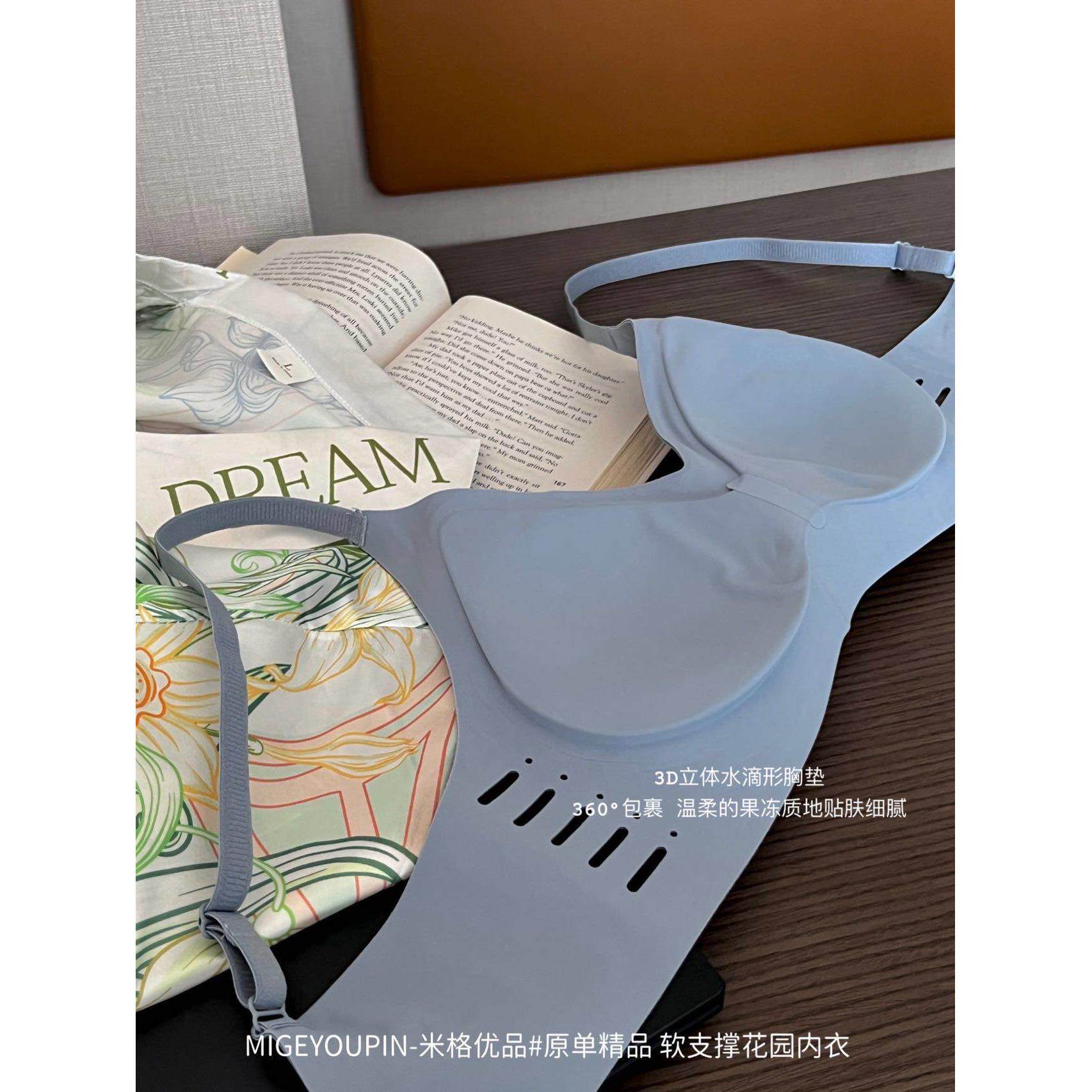 米格优品深V软支撑花园内衣一体式 果冻无痕乳胶无钢圈美背文胸女