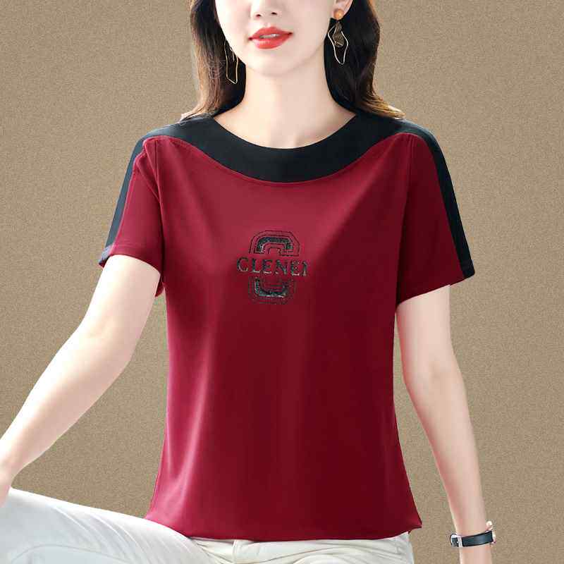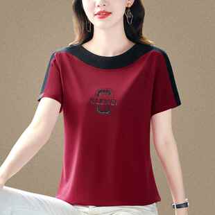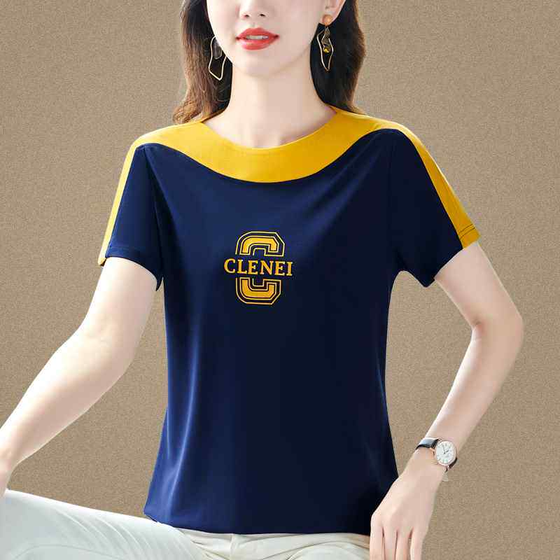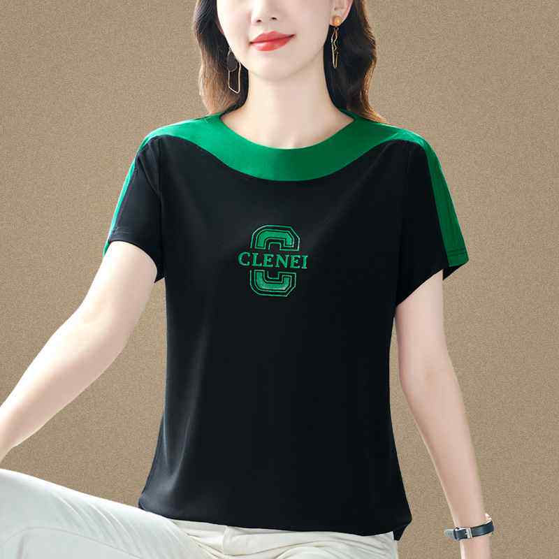 冰丝T恤洋派休闲时尚 短袖 圆领中年妈妈设计0325z1 夏季 高级感女装