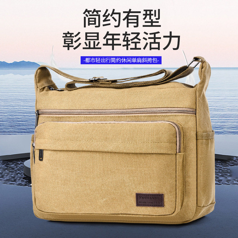 包包多功能背包单肩斜挎包 休闲男士 24男式 帆布包男斜跨男包横款