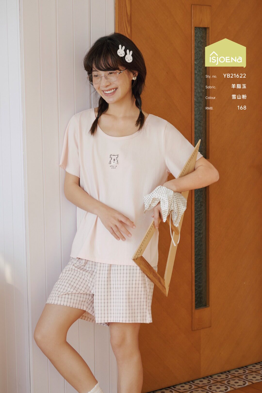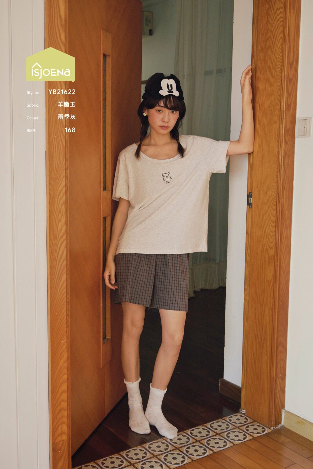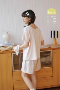 家居服睡衣21622 短裤 伊姿娇娜春夏女款 纯棉圆领套头短袖